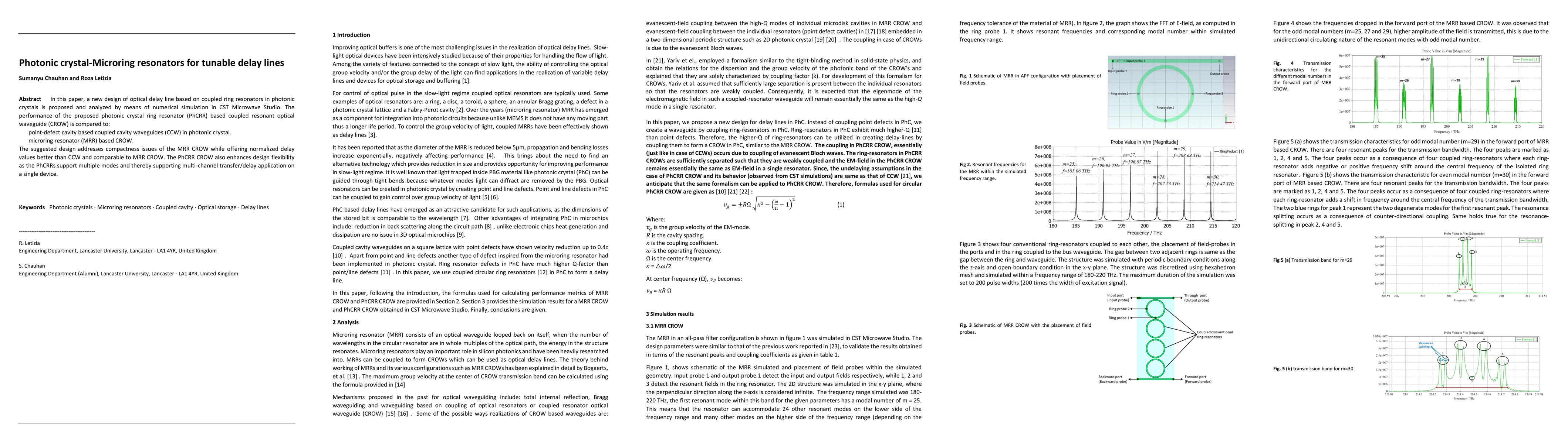 This paper proposes a photonic crystal-microring resonator design for tunable optical delay lines, demonstrating better normalized delay performance compared to point-defect cavity-based designs while offering compactness and multi-channel transfer capabilities. The design uses coupled ring resonators in photonic crystals for enhanced flexibility.