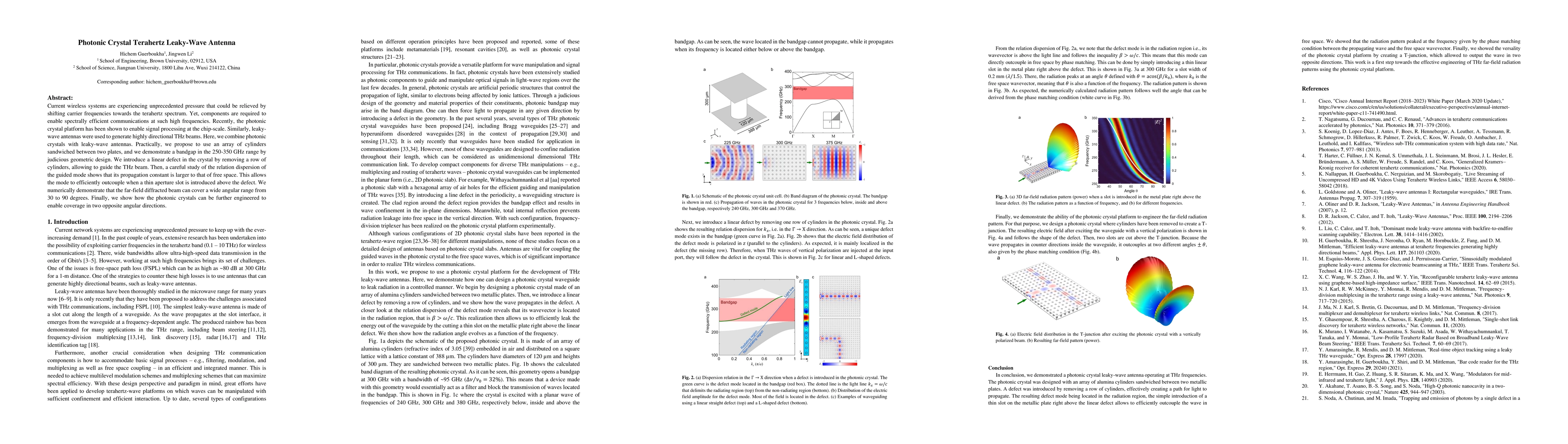 Researchers developed a terahertz leaky-wave antenna using photonic crystals, achieving efficient outcoupling of THz beams over a wide angular range from 30 to 90 degrees.