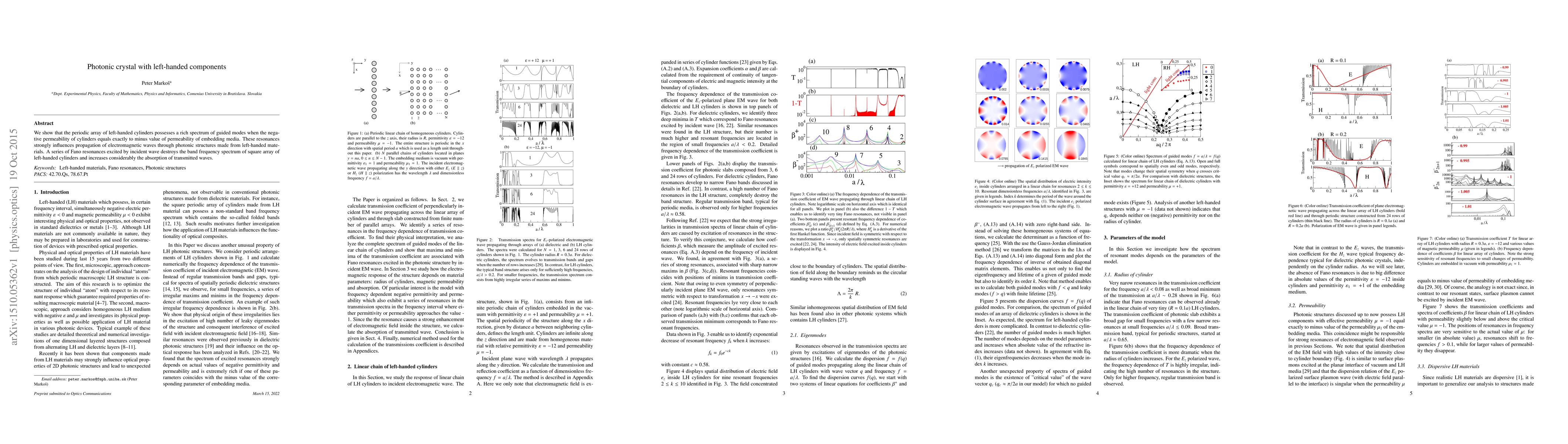 This paper demonstrates that a photonic crystal made of left-handed cylinders can support a variety of guided modes, particularly when the cylinders' negative permeability matches the embedding medium's permeability. It also highlights that Fano resonances induced by incident waves disrupt the band frequency spectrum and significantly enhance the absorption of transmitted electromagnetic waves.