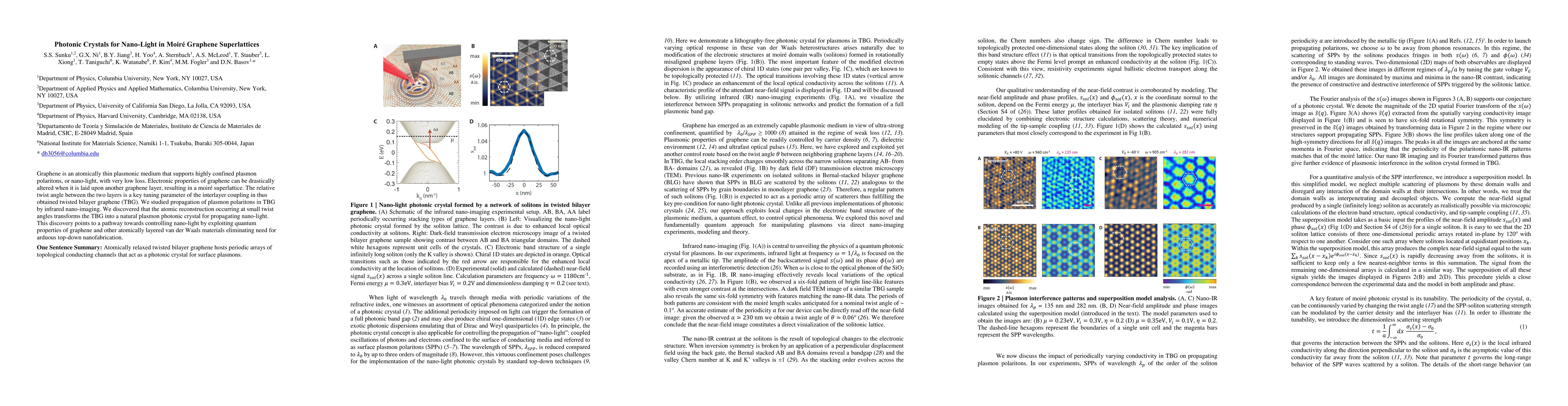 Graphene is an atomically thin plasmonic medium that supports highly confined plasmon polaritons, or nano-light, with very low loss. Electronic properties of graphene can be drastically altered when it is laid upon another graphene layer, resulting in a moir\'e superlattice. The relative twist angle between the two layers is a key tuning parameter of the interlayer coupling in thus obtained twisted bilayer graphene (TBG). We studied propagation of plasmon polaritons in TBG by infrared nano-imaging. We discovered that the atomic reconstruction occurring at small twist angles transforms the TBG into a natural plasmon photonic crystal for propagating nano-light. This discovery points to a pathway towards controlling nano-light by exploiting quantum properties of graphene and other atomically layered van der Waals materials eliminating need for arduous top-down nanofabrication.