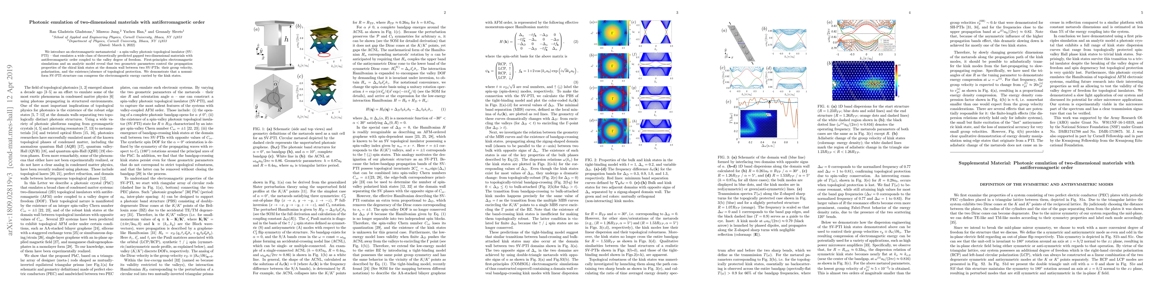 We introduce an electromagnetic metamaterial - a spin-valley photonic topological insulator (SV-PTI) - that emulates a wide class of theoretically predicted gapped two-dimensional materials with antiferromagnetic order coupled to the valley degree of freedom. First-principles electromagnetic simulations and an analytic model reveal that a single parameter controls the propagation properties of the chiral states at the domain wall between two SV-PTIs: their group velocity, polarization, and the existence/absence of topological protection. The latter is determined by the geometry of the line of the least frequency separation between the bandgap-forming propagation bands. Topologically-protected compression of electromagnetic energy via group velocity control is enabled by SV-PTIs.