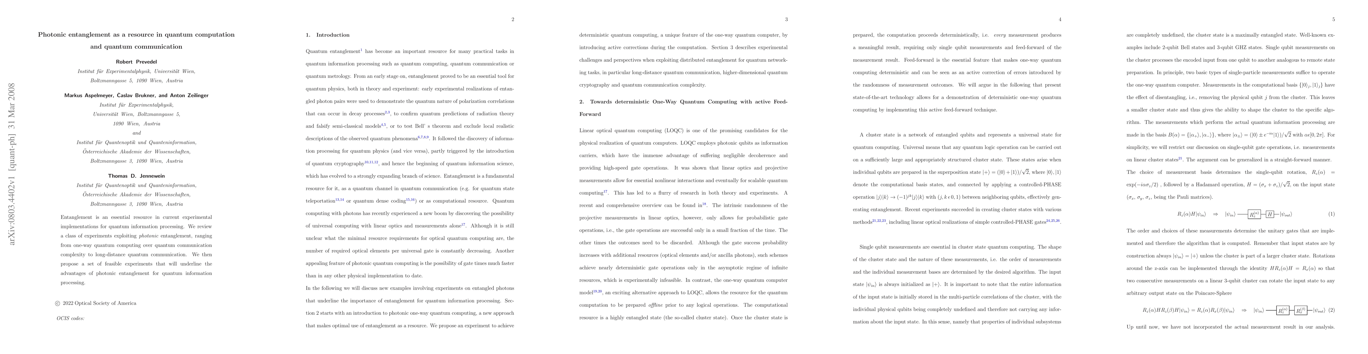 This paper reviews experiments utilizing photonic entanglement for quantum computation and communication, and proposes feasible experiments highlighting its advantages in quantum information processing. The focus is on one-way quantum computing and long-distance quantum communication.