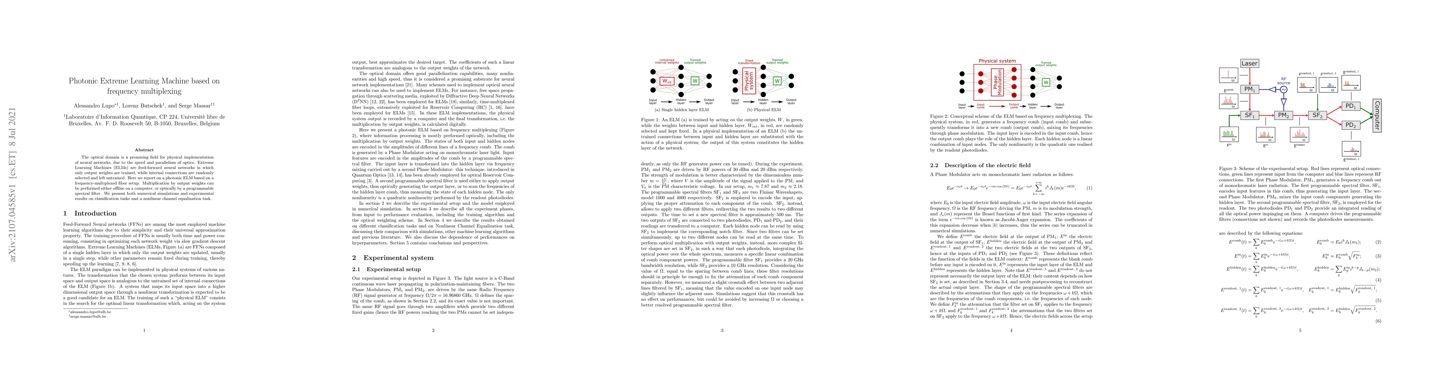 This paper proposes a photonic implementation of an Extreme Learning Machine using frequency multiplexing in an optical fiber setup. The study demonstrates both numerical simulations and experimental results for classification and nonlinear channel equalization tasks, showcasing the potential of optical neural networks.