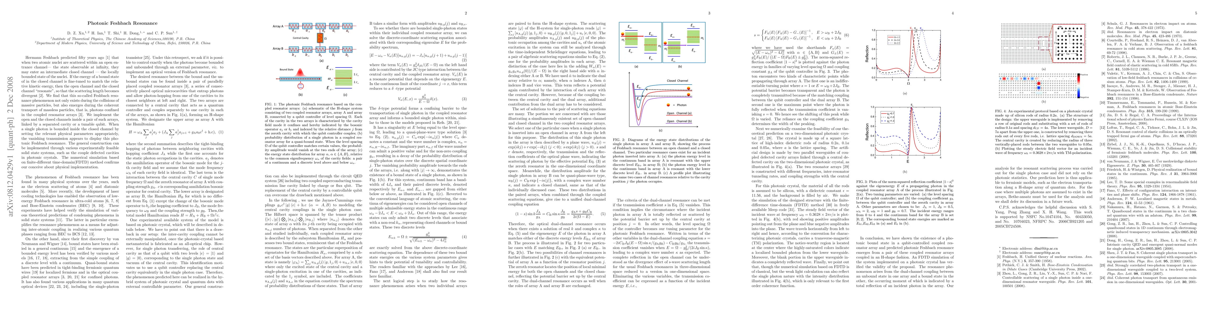 Hermann Feshbach predicted fifty years ago that when two atomic nuclei are scattered within an open entrance channel-- the state observable at infinity, they may enter an intermediate closed channel -- the locally bounded state of the nuclei. If the energy of a bound state of in the closed channel is fine-tuned to match the relative kinetic energy, then the open channel and the closed channel "resonate", so that the scattering length becomes divergent. We find that this so-called Feshbach resonance phenomenon not only exists during the collisions of massive particles, but also emerges during the coherent transport of massless particles, that is, photons confined in the coupled resonator arrays \cite{lzhou08}. We implement the open and the closed channels inside a pair of such arrays, linked by a separated cavity or a tunable qubit. When a single photon is bounded inside the closed channel by setting the relevant physical parameters appropriately, the vanishing transmission appears to display this photonic Feshbach resonance. The general construction can be implemented through various experimentally feasible solid state systems, such as the couple defected cavities in photonic crystals. The numerical simulation based on finite-different time-domain(FDTD) method confirms our conceive about physical implementation.