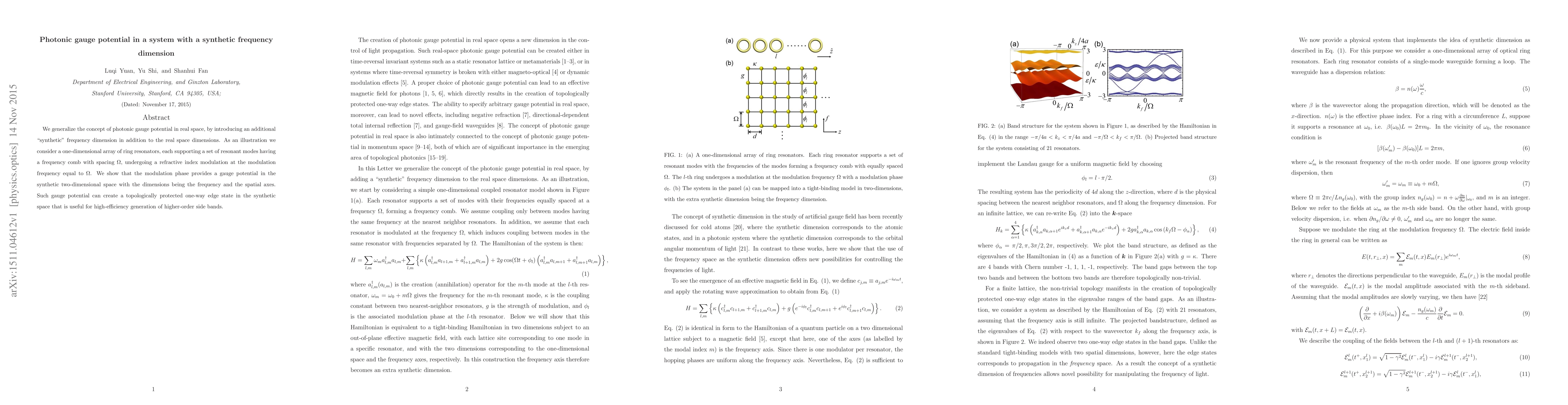 Researchers introduced a new concept for photonic gauge potential in a synthetic frequency dimension, enabling topologically protected edge states for high-efficiency side band generation.