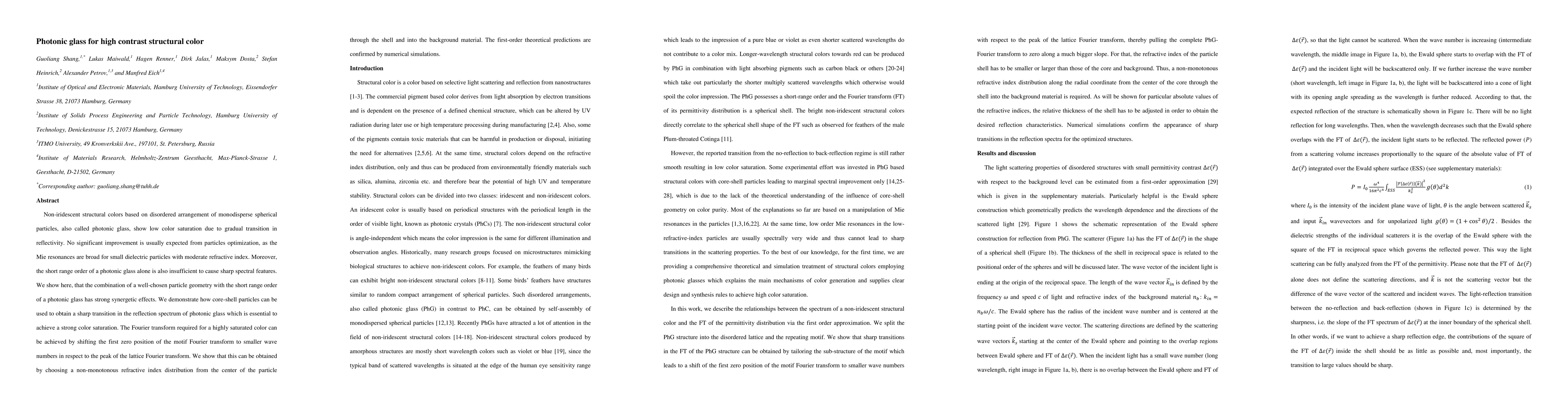 Researchers developed a method to create photonic glass with high contrast structural color by combining optimized particle geometry with short-range order, achieving stronger color saturation than previously thought possible.