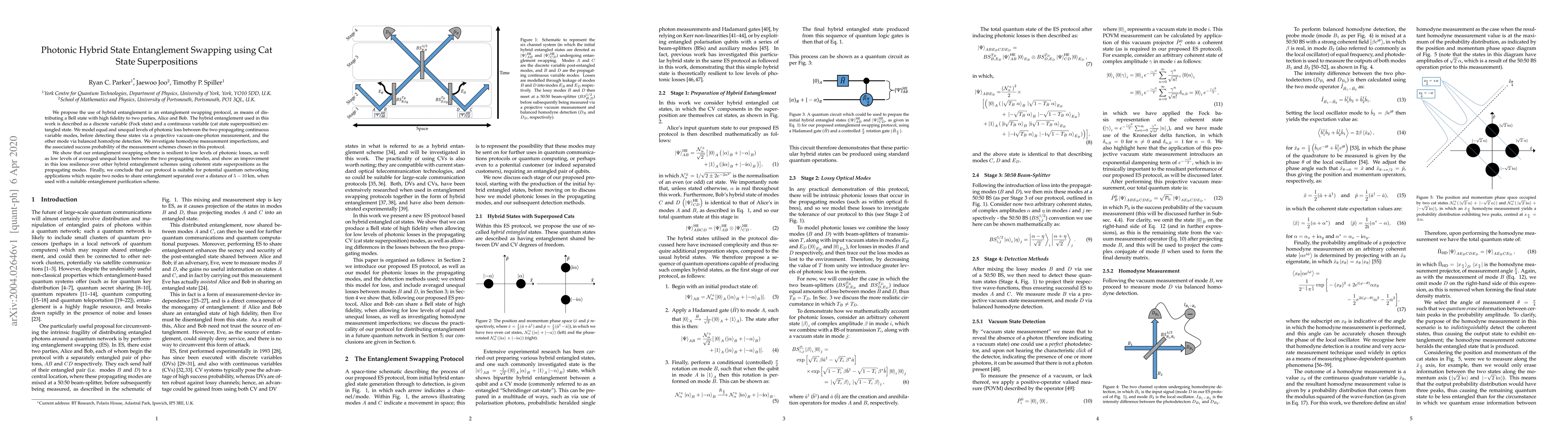 This paper proposes a photonic hybrid entanglement swapping protocol using cat state superpositions to distribute high fidelity Bell states between parties Alice and Bob. The scheme demonstrates resilience to low photonic losses and outperforms other hybrid entanglement methods, making it suitable for quantum networking applications over distances of 5-10 km.