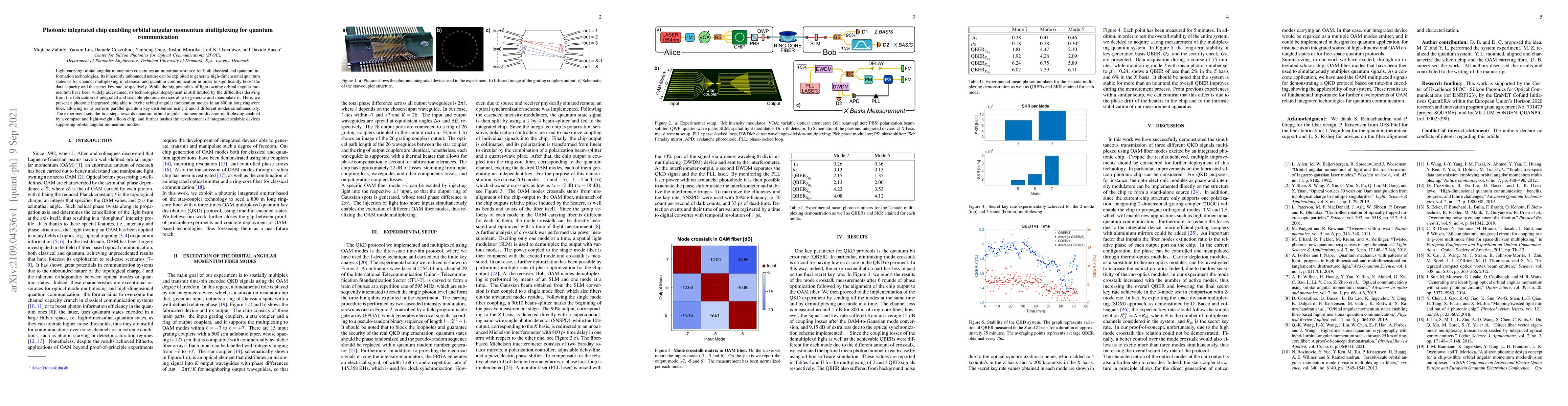 This paper presents a photonic integrated chip that can generate and manipulate orbital angular momentum modes in fiber optics, enabling parallel quantum key distribution and setting the groundwork for scalable quantum communication systems. The chip marks a significant step towards developing compact, integrated devices for quantum communication.