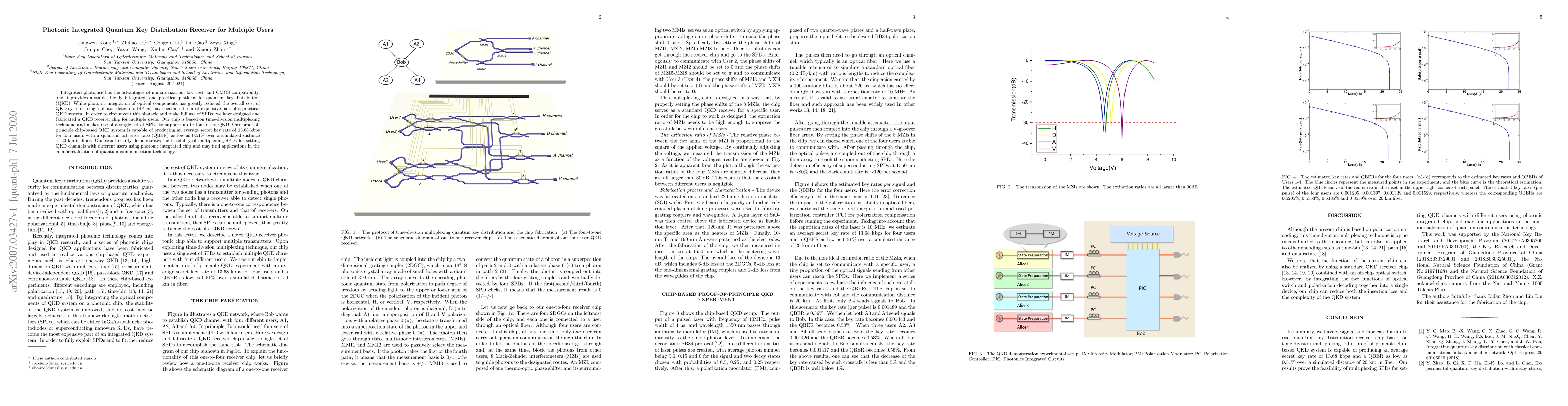 This paper presents a photonic integrated quantum key distribution (QKD) receiver chip designed for multiple users, leveraging time-division multiplexing to utilize a single set of single-photon detectors (SPDs) for up to four users. The chip achieves an average secret key rate of 13.68 kbps with a low quantum bit error rate (QBER) of 0.51% over 20 km, demonstrating the potential for commercial quantum communication.