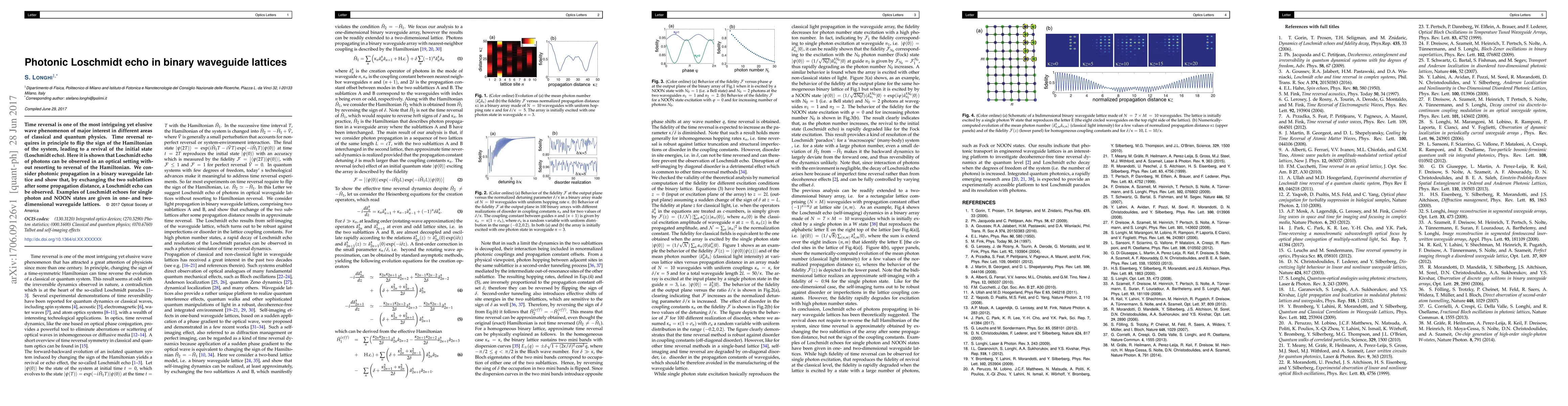 Time reversal is one of the most intriguing yet elusive wave phenomenon of major interest in different areas of classical and quantum physics. Time reversal requires in principle to flip the sign of the Hamiltonian of the system, leading to a revival of the initial state (Loschmidt echo). Here it is shown that Loschmidt echo of photons can be observed in an optical setting without resorting to reversal of the Hamiltonian. We consider photonic propagation in a binary waveguide lattice and show that, by exchanging the two sublattices after some propagation distance, a Loschmidt echo can be observed. Examples of Loschmidt echoes for single photon and NOON states are given in one- and two-dimensional waveguide lattices.