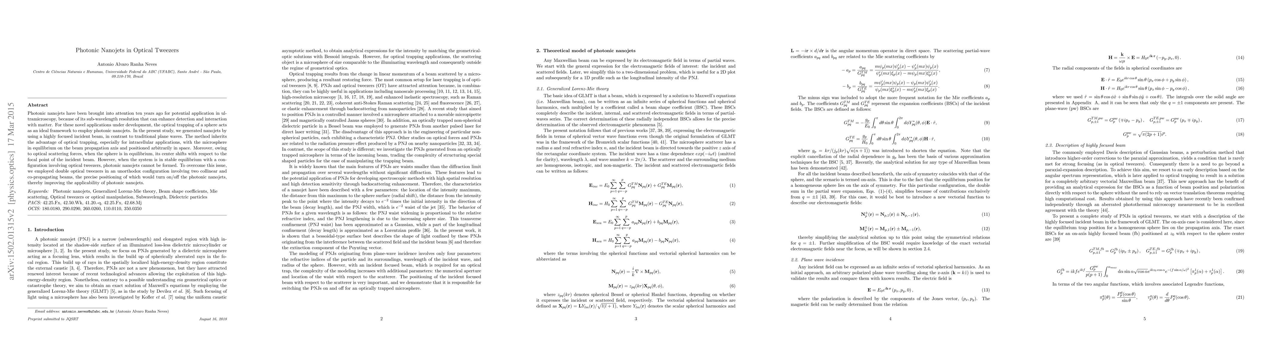 This study explores the generation of photonic nanojets using focused incident beams in optical tweezers, highlighting their potential for ultramicroscopy. The researchers introduce a novel double optical tweezers setup to enable the formation of photonic nanojets, enhancing their applicability for intracellular applications.