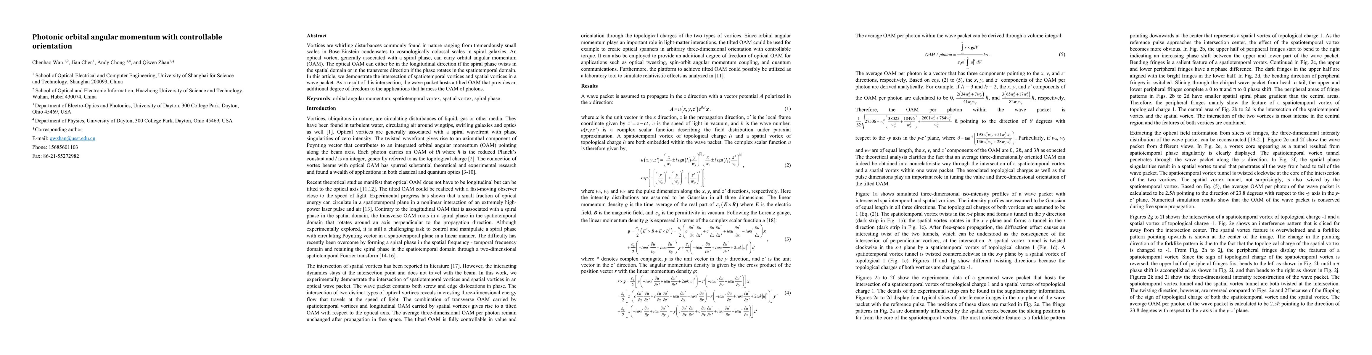 This paper demonstrates a method to generate photonic orbital angular momentum with controllable orientation through the intersection of spatiotemporal and spatial vortices in a wave packet, providing an additional degree of freedom for OAM-based applications.