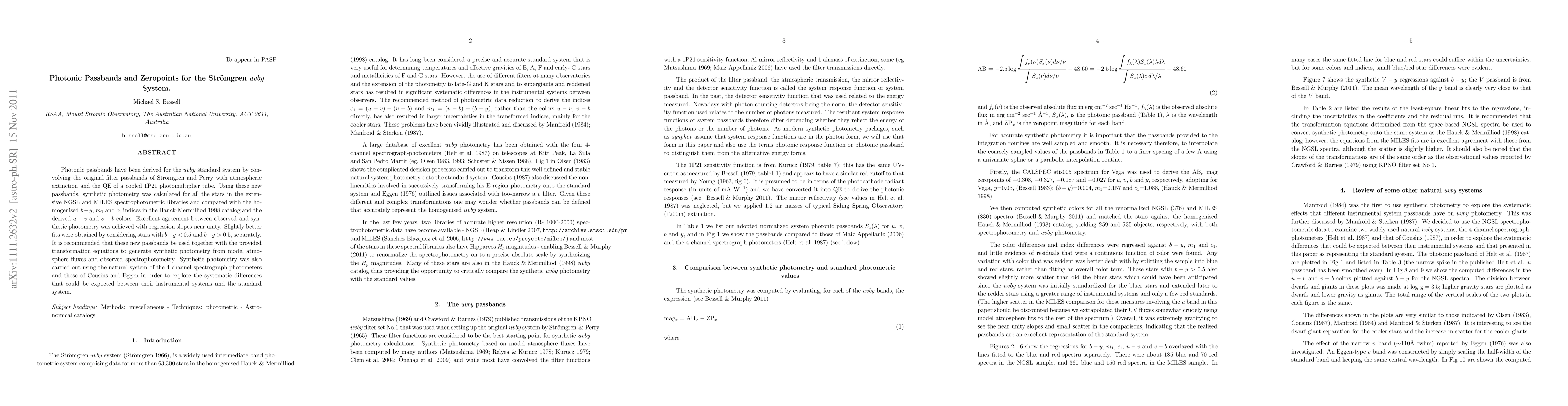 This paper derives new photonic passbands for the Strömgren uvby system by convolving original filter passbands with atmospheric extinction and photomultiplier tube QE, achieving excellent agreement with observed photometry in the NGSL and MILES libraries. It recommends using these new passbands with transformation equations for synthetic photometry.