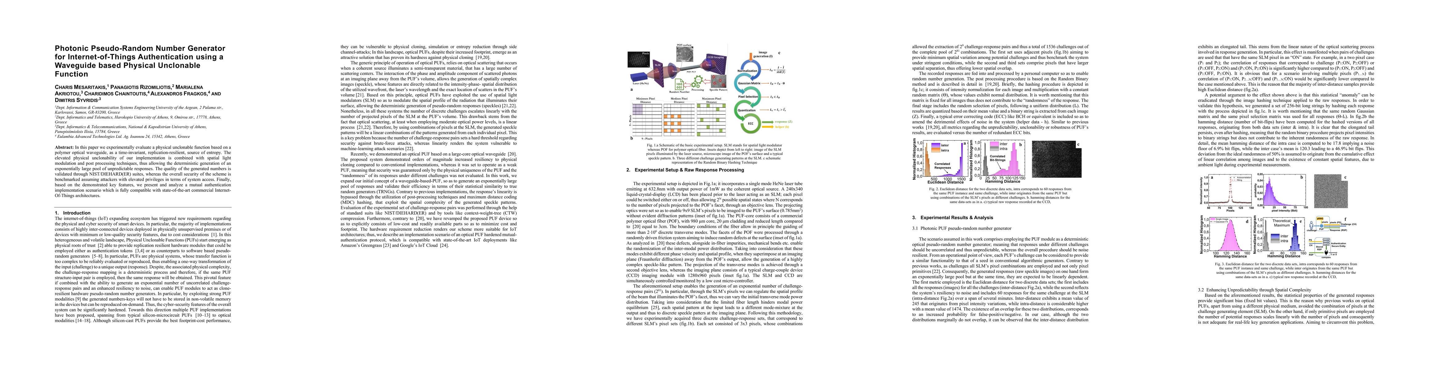 In this paper we experimentally evaluate a physical unclonable function based on a polymer optical waveguide, as a time-invariant, replication-resilient, source of entropy. The elevated physical unclonability of our implementation is combined with spatial light modulation and post processing techniques, thus allowing the deterministic generation of an exponentially large pool of unpredictable responses. The quality of the generated numbers is validated through NIST/DIEHARD(ER) suites, whereas the overall security of the scheme is benchmarked assuming attackers with elevated privileges in terms of system access. Finally, based on the demonstrated key features, we present and analyze a mutual authentication implementation scenario which is fully compatible with state-of-the-art commercial Internet-Of-Things architectures