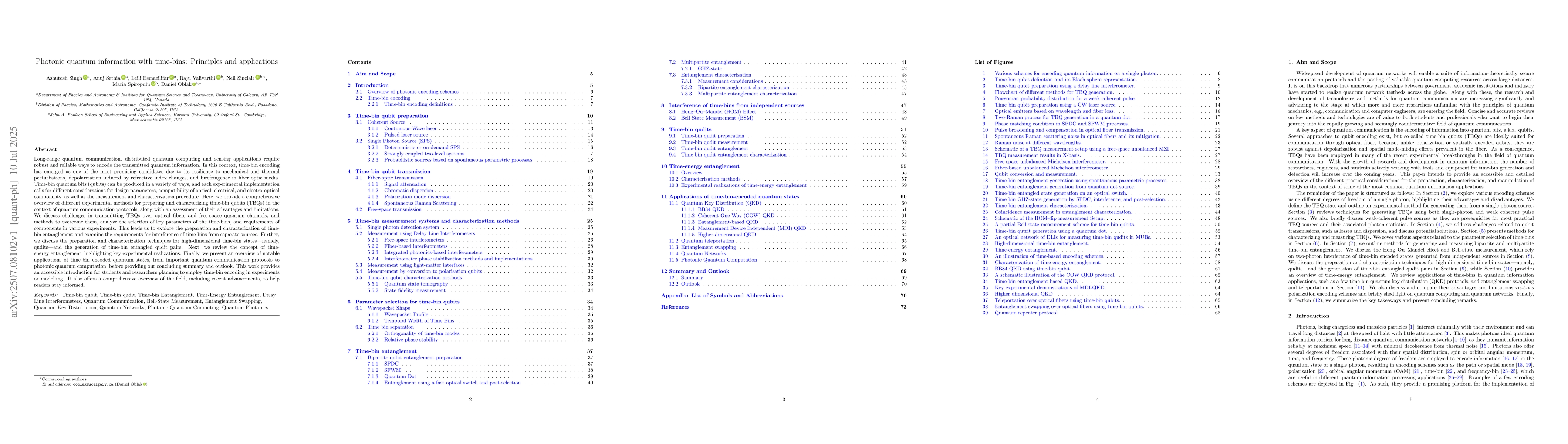 Long-range quantum communication, distributed quantum computing, and sensing applications require robust and reliable ways to encode transmitted quantum information. In this context, time-bin encoding has emerged as a promising candidate due to its resilience to mechanical and thermal perturbations, depolarization from refractive index changes, and birefringence in fiber optic media. Time-bin quantum bits (qubits) can be produced in various ways, and each implementation calls for different considerations regarding design parameters, component compatibility (optical, electrical, electro-optical), and measurement procedures. Here, we provide a comprehensive overview of experimental methods for preparing and characterizing time-bin qubits (TBQs) for quantum communication protocols, with an assessment of their advantages and limitations. We discuss challenges in transmitting TBQs over optical fibers and free-space channels, and methods to overcome them. We also analyze the selection of key time-bin parameters and component requirements across experiments. This leads us to explore the preparation and characterization of time-bin entanglement and examine requirements for interference of time-bins from separate sources. Further, we cover preparation and characterization techniques for high-dimensional time-bin states, namely qudits, and the generation of time-bin entangled qudit pairs. We review time-energy entanglement and key experimental realizations. Finally, we present notable applications of time-bin encoded quantum states, from quantum communication protocols to photonic quantum computation. This work serves as an accessible introduction and a comprehensive review of recent developments.