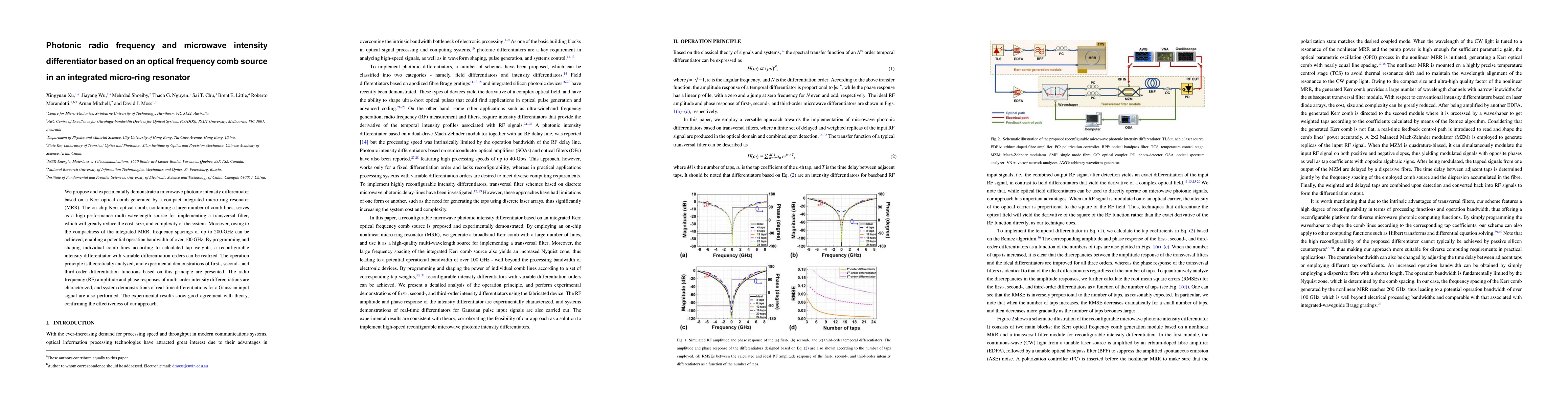 This research proposes and experimentally demonstrates a compact microwave photonic intensity differentiator using a Kerr optical comb in an integrated micro-ring resonator, achieving high-performance differentiation over a wide bandwidth. Experimental results show first-, second-, and third-order differentiation functions with good agreement to theoretical analysis.