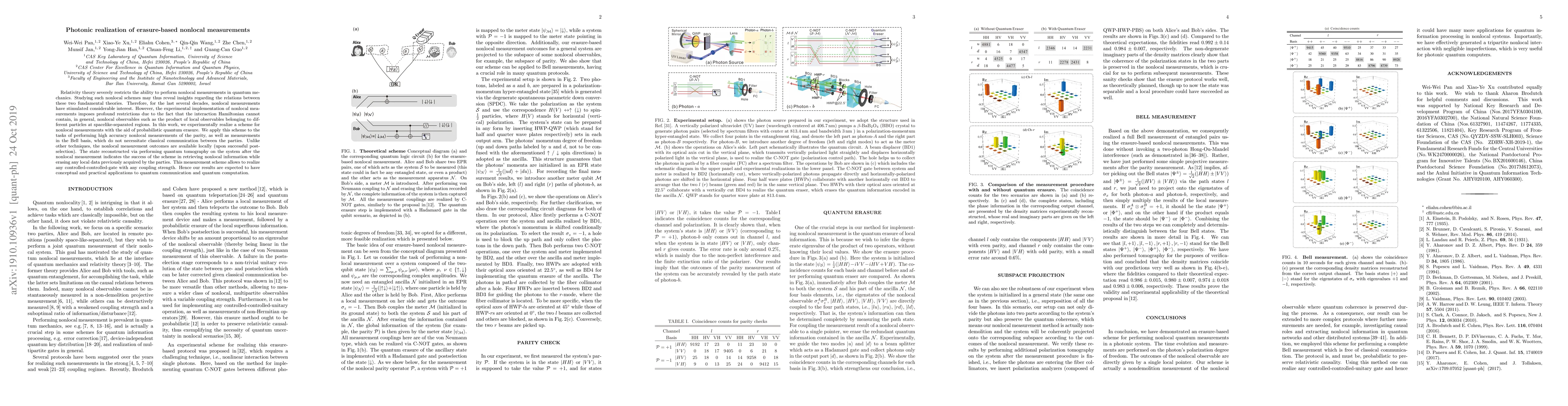 This paper presents an experimental realization of nonlocal measurements using photonic systems and probabilistic quantum erasure, enabling high accuracy nonlocal measurements of parity and Bell basis without classical communication. The scheme allows for the retrieval of nonlocal information while erasing local data, with potential applications in quantum communication and computation.