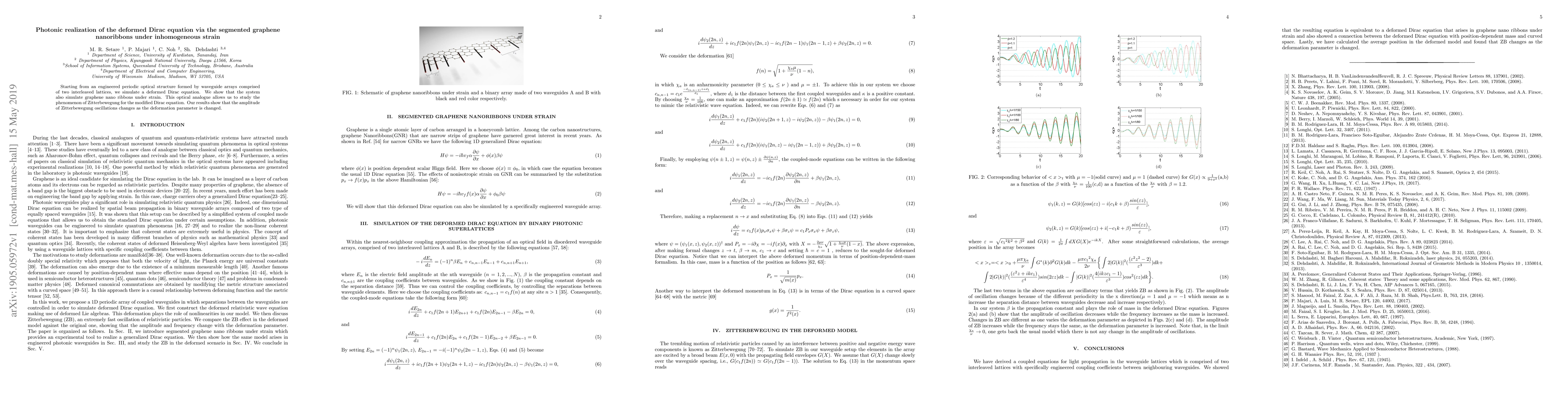 Starting from an engineered periodic optical structure formed by waveguide arrays comprised of two interleaved lattices, we simulate a deformed Dirac equation. We show that the system also simulate graphene nano ribbons under strain. This optical analogue allows us to study the phenomenon of Zitterbewegung for the modified Dirac equation. Our results show that the amplitude of Zitterbewegung oscillations changes as the deformation parameter is changed.
