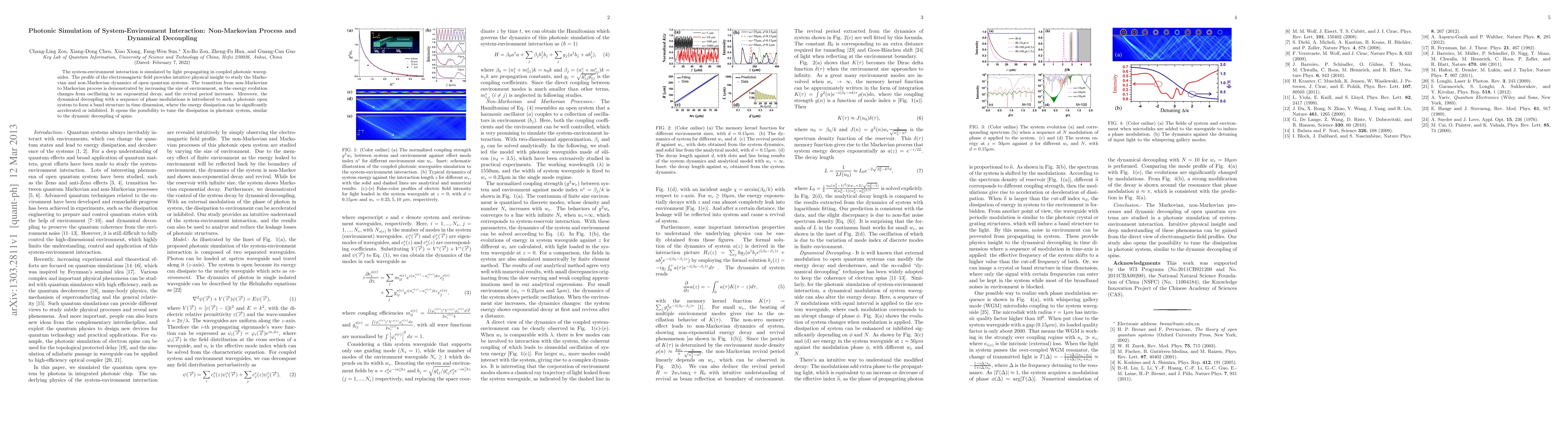 This paper simulates system-environment interactions using photonic waveguides, revealing insights into Markovian and non-Markovian dynamics. Dynamical decoupling techniques are applied to modulate energy dissipation, akin to spin systems, demonstrating tunable dissipation in photonic systems.