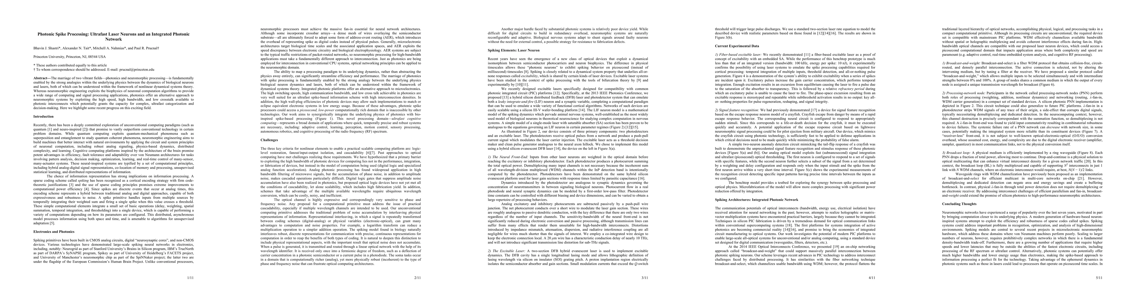 This paper explores the integration of photonics and neuromorphic processing, leveraging the similarities between biological neurons and lasers to develop ultrafast laser neurons and an integrated photonic network for high-speed, low-crosstalk computing and signal processing. Recent advancements in this field promise complex, ultrafast categorization and decision-making capabilities.