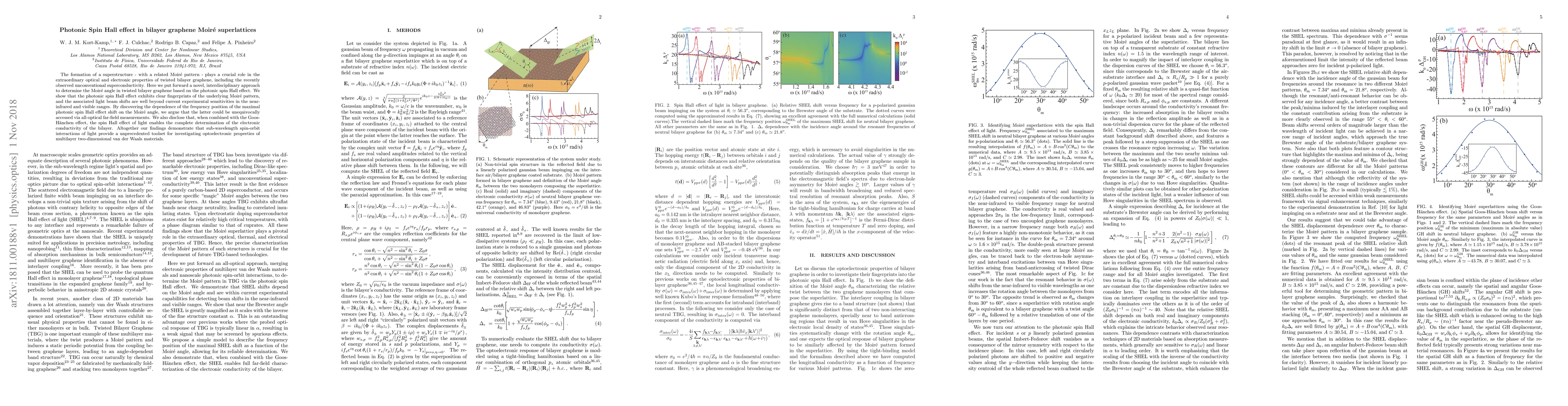 The formation of a superstructure - with a related Moir\'e pattern - plays a crucial role in the extraordinary optical and electronic properties of twisted bilayer graphene, including the recently observed unconventional superconductivity. Here we put forward a novel, interdisciplinary approach to determine the Moir\'e angle in twisted bilayer graphene based on the photonic spin Hall effect. We show that the photonic spin Hall effect exhibits clear fingerprints of the underlying Moir\'e pattern, and the associated light beam shifts are well beyond current experimental sensitivities in the near-infrared and visible ranges. By discovering the dependence of the frequency position of the maximal photonic spin Hall effect shift on the Moir\'e angle, we argue that the latter could be unequivocally accessed via all-optical far-field measurements. We also disclose that, when combined with the Goos-H\"anchen effect, the spin Hall effect of light enables the complete determination of the electronic conductivity of the bilayer. Altogether our findings demonstrate that sub-wavelength spin-orbit interactions of light provide a unprecedented toolset for investigating optoelectronic properties of multilayer two-dimensional van der Waals materials.