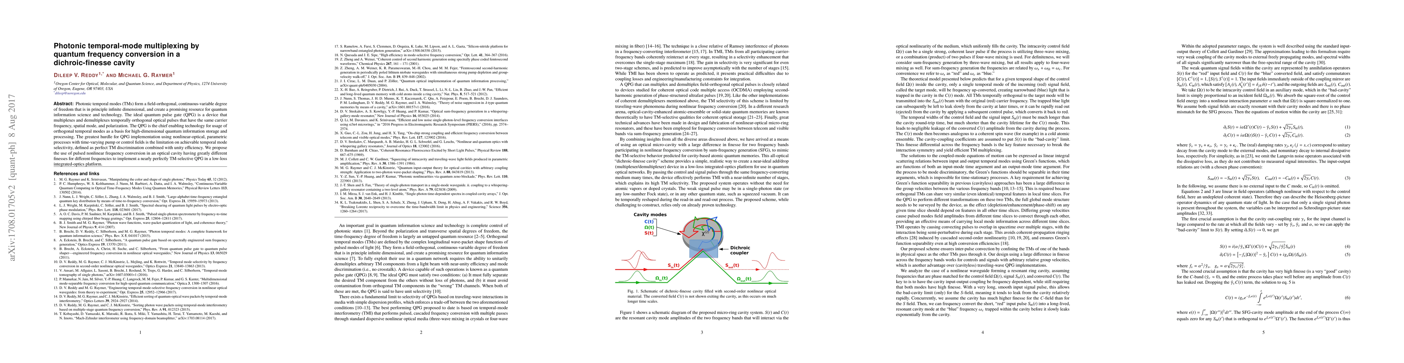 This paper proposes a method for photonic temporal-mode multiplexing using quantum frequency conversion within a dichroic-finesse cavity. The method aims to achieve high temporal mode selectivity for quantum pulse gates, enabling high-dimensional quantum information processing.