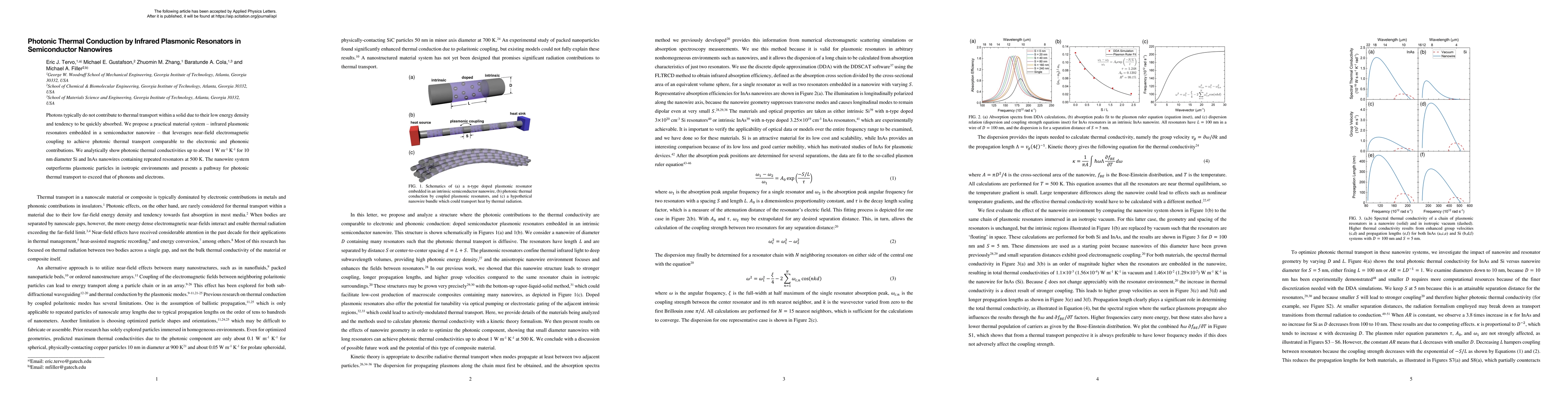 This paper proposes a novel material system of infrared plasmonic resonators in semiconductor nanowires to achieve significant photonic thermal conduction, leveraging near-field electromagnetic coupling. The study demonstrates that such nanowire systems can achieve thermal conductivities comparable to electronic and phononic contributions, potentially surpassing them.