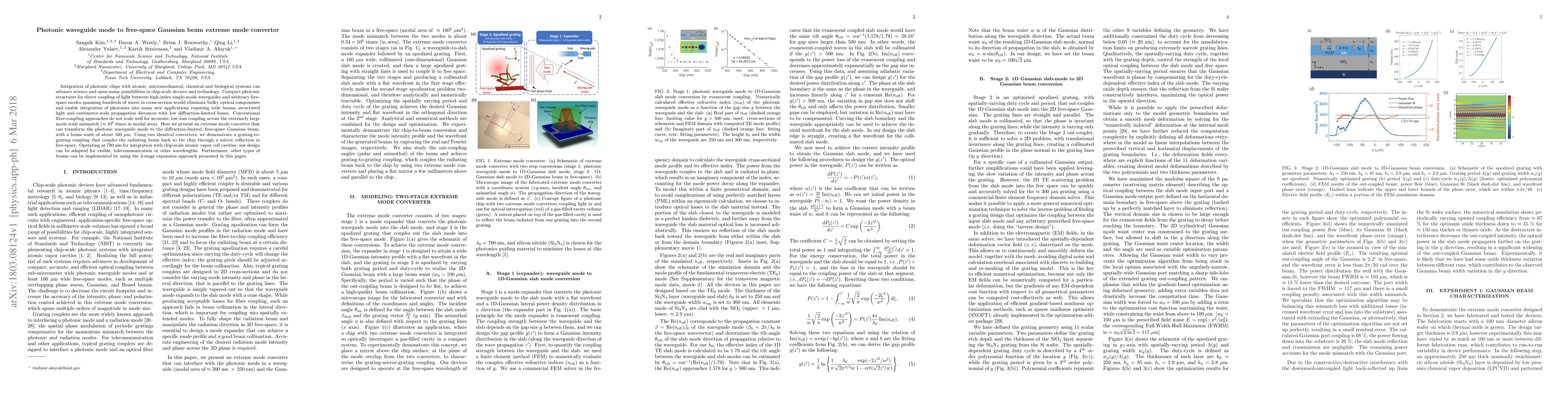 This paper presents a photonic waveguide mode to free-space Gaussian beam extreme mode converter, enabling compact photonic structures to couple high-index single-mode waveguides with large free-space modes. The converter achieves diffraction-limited coupling with a beam waist of 160 µm, facilitating integration of photonics into various applications requiring wide beams and low diffraction losses.
