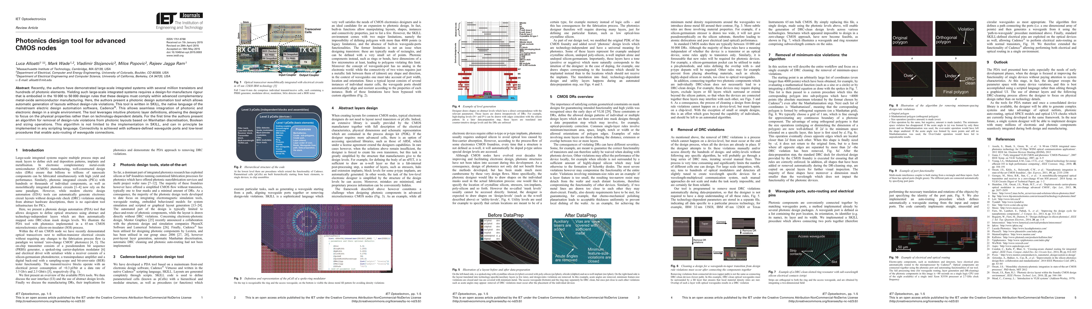 The research introduces a photonic design automation tool for advanced CMOS nodes, ensuring design-rule compliance without manual intervention. This tool, written in SKILL, integrates photonic and electronic design, and features an algorithm for removing design-rule violations, enabling auto-routing of waveguide connections.