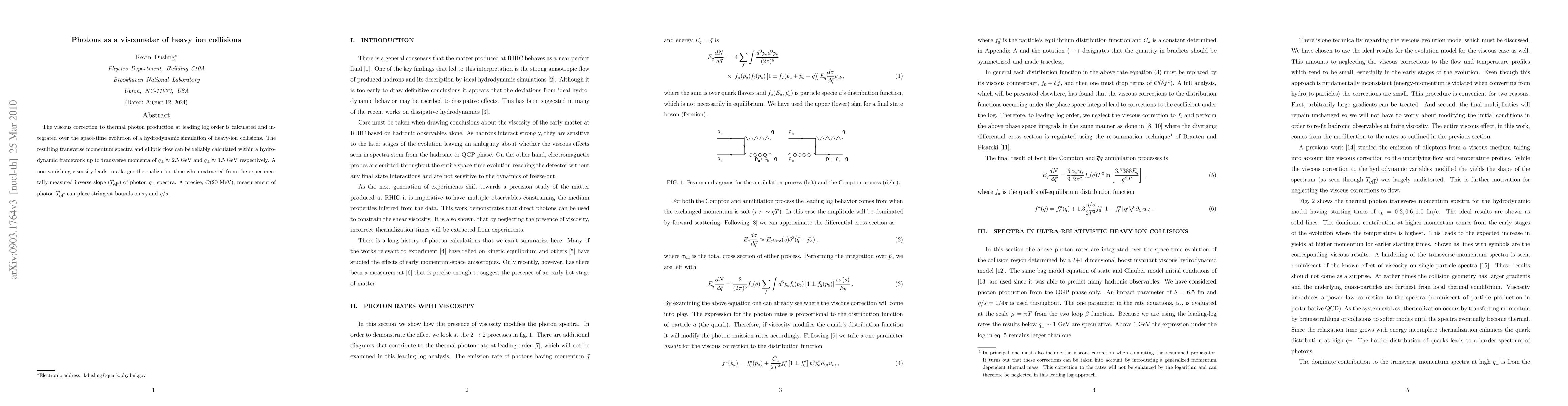 The viscous correction to thermal photon production at leading log order is calculated and integrated over the space-time evolution of a hydrodynamic simulation of heavy-ion collisions. The resulting transverse momentum spectra and elliptic flow can be reliably calculated within a hydrodynamic framework up to transverse momenta of $q_\perp$ = 2.5 GeV and $q_\perp$ = 1.5 GeV respectively. A non-vanishing viscosity leads to a larger thermalization time when extracted from the experimentally measured inverse slope (T_eff) of photon $q_\perp$ spectra. A precise, O(20 MeV), measurement of photon T_eff can place stringent bounds on $\tau_0$ and $\eta/s$.