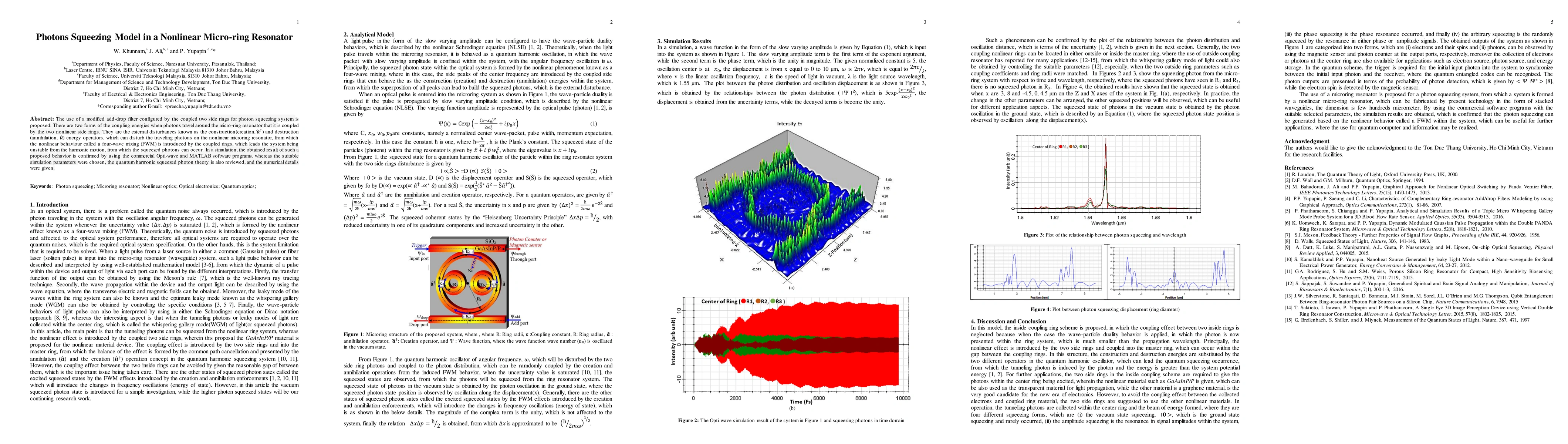 A nonlinear micro-ring resonator is proposed for a photon squeezing system.