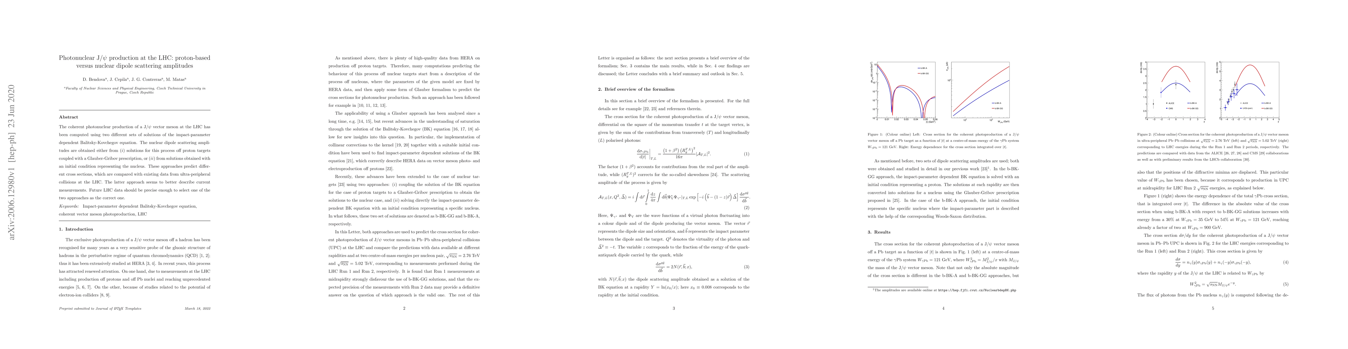 The coherent photonuclear production of a $\mathrm{J/}\psi$ vector meson at the LHC has been computed using two different sets of solutions of the impact-parameter dependent Balitsky-Kovchegov equation. The nuclear dipole scattering amplitudes are obtained either from ($i$) solutions for this process off proton targets coupled with a Glauber-Gribov prescription, or ($ii$) from solutions obtained with an initial condition representing the nucleus. These approaches predict different cross sections, which are compared with existing data from ultra-peripheral collisions at the LHC. The latter approach seems to better describe current measurements. Future LHC data should be precise enough to select one of the two approaches as the correct one.