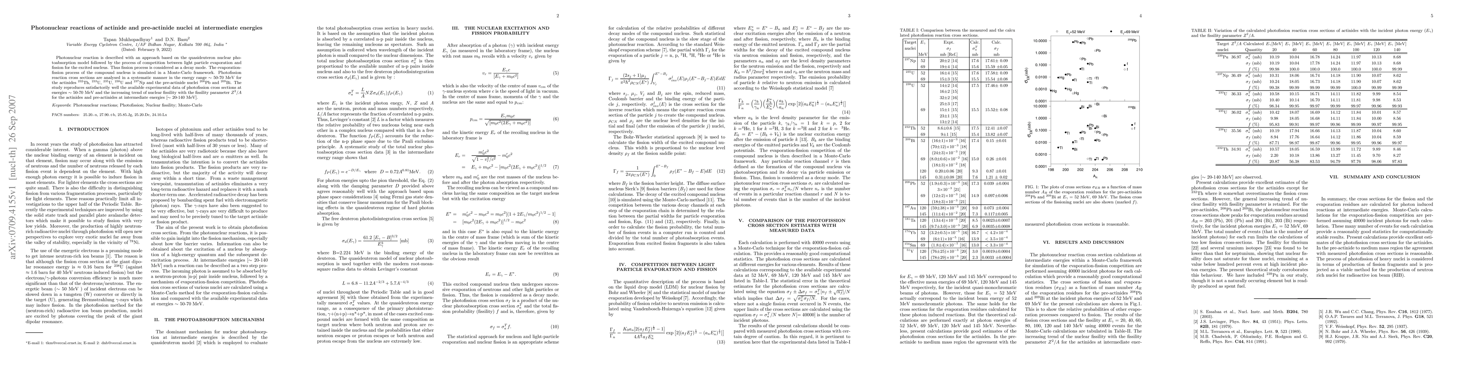 This paper investigates photonuclear reactions in actinide and pre-actinide nuclei using a quasideuteron model and Monte-Carlo simulations. The study analyzes photofission cross sections in the energy range of 50-70 MeV, showing good agreement with experimental data and highlighting the increasing trend of nuclear fissility with the fissility parameter $Z^2/A$ for these nuclei.