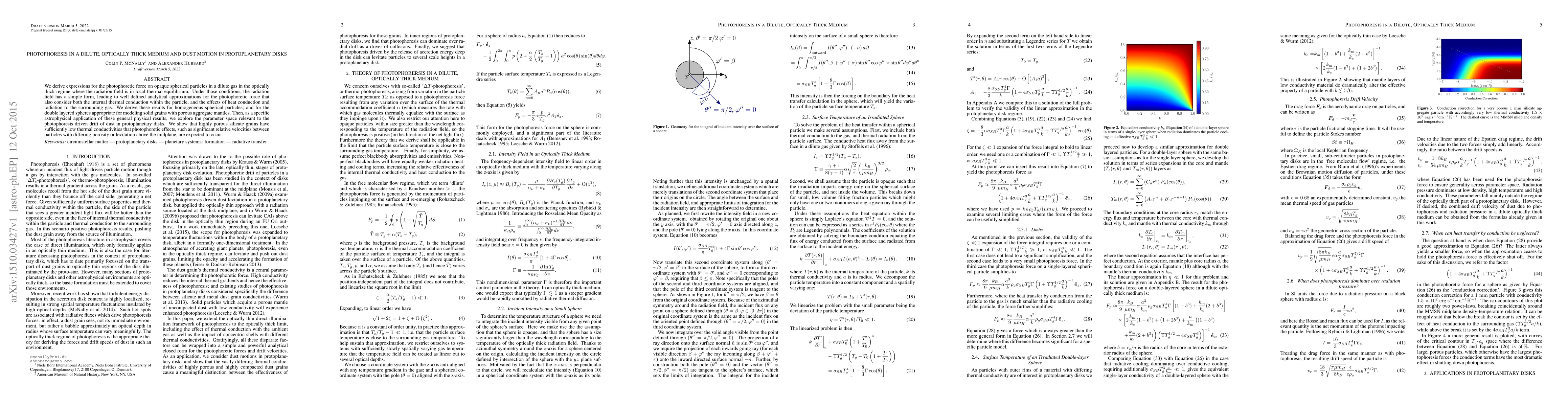 We derive expressions for the photophoretic force on opaque spherical particles in a dilute gas in the optically thick regime where the radiation field is in local thermal equilibrium. Under those conditions, the radiation field has a simple form, leading to well defined analytical approximations for the photophoretic force that also consider both the internal thermal conduction within the particle, and the effects of heat conduction and radiation to the surrounding gas. We derive these results for homogeneous spherical particles; and for the double layered spheres appropriate for modeling solid grains with porous aggregate mantles. Then, as a specific astrophysical application of these general physical results, we explore the parameter space relevant to the photophoresis driven drift of dust in protoplanetary disks. We show that highly porous silicate grains have sufficiently low thermal conductivities that photophoretic effects, such as significant relative velocities between particles with differing porosity or levitation above the midplane, are expected to occur.
