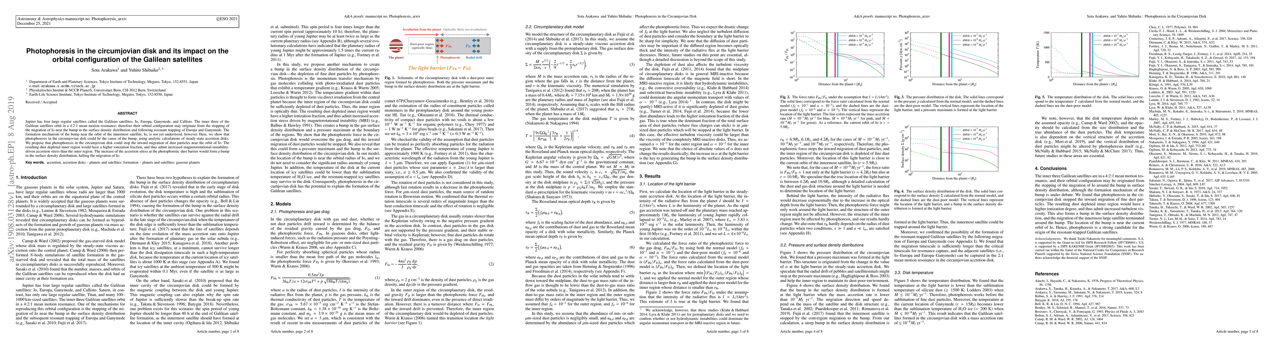 This paper proposes that photophoresis in the circumjovian disk could create a bump in the surface density distribution near the orbit of Io, halting its inward migration and leading to the resonant trapping of Europa and Ganymede, thus explaining the orbital configuration of the Galilean satellites.