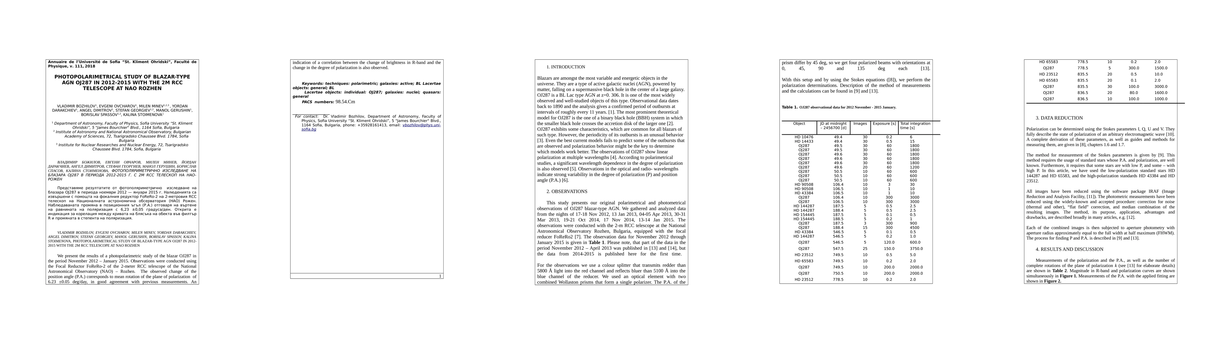We present the results of a photopolarimetric study of the blazar OJ287 in the period November 2012-January 2015. Observations were conducted using the Focal Reductor FoReRo-2 of the 2-meter RCC telescope of the National Astronomical Observatory (NAO) Rozhen. The observed change of the position angle (P.A.) corresponds to mean rotation of the plane of polarization of 6.23 deg/day, in good agreement with previous measurements. An indication of a correlation between the change of brightness in R-band and the change in the degree of polarization is also observed.