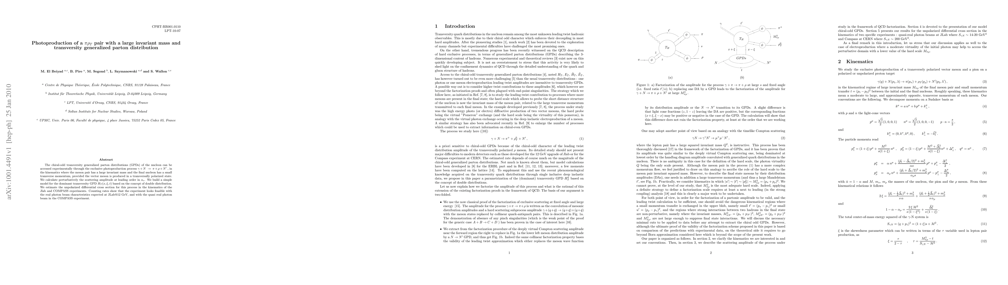 This paper investigates the photoproduction of a pi rho pair with large invariant mass to access chiral-odd transversity generalized parton distributions (GPDs) of the nucleon. The study calculates the leading-order perturbative scattering amplitude and estimates the feasibility of the process in the JLab and COMPASS experiments.