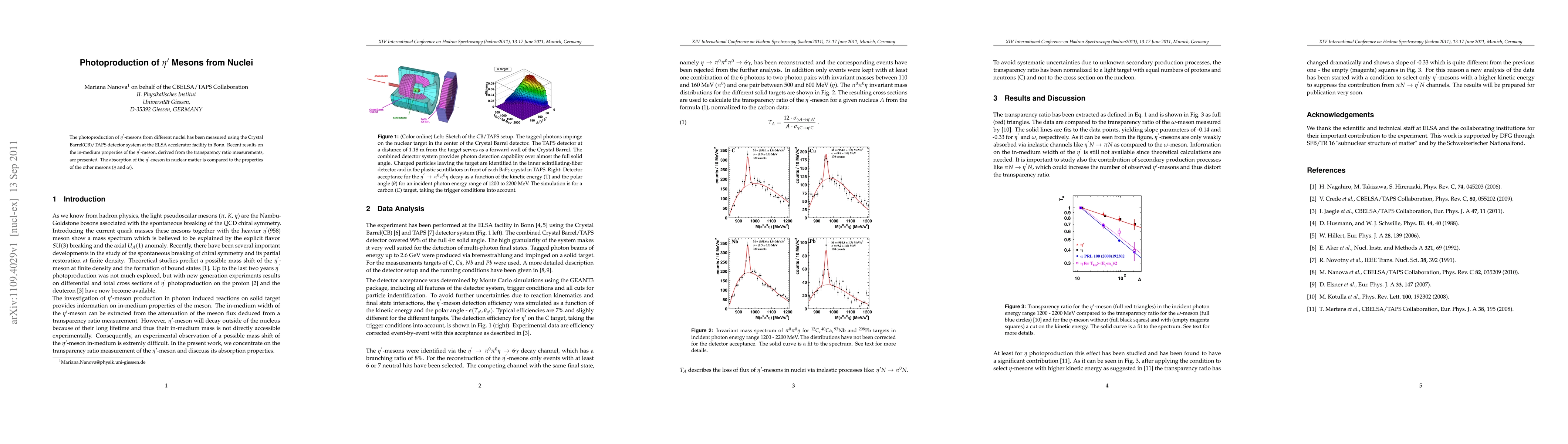 The photoproduction of η' mesons from nuclei was measured using the Crystal Barrel (CB)/TAPS detector system at the ELSA accelerator facility in Bonn. Tagged photons of up to 2.6 GeV impinged on solid targets (C, Ca, N, and Pb). The η' mesons were identified via the decay channel η' → π0π0η → 6γ, with a branching ratio of 8%.