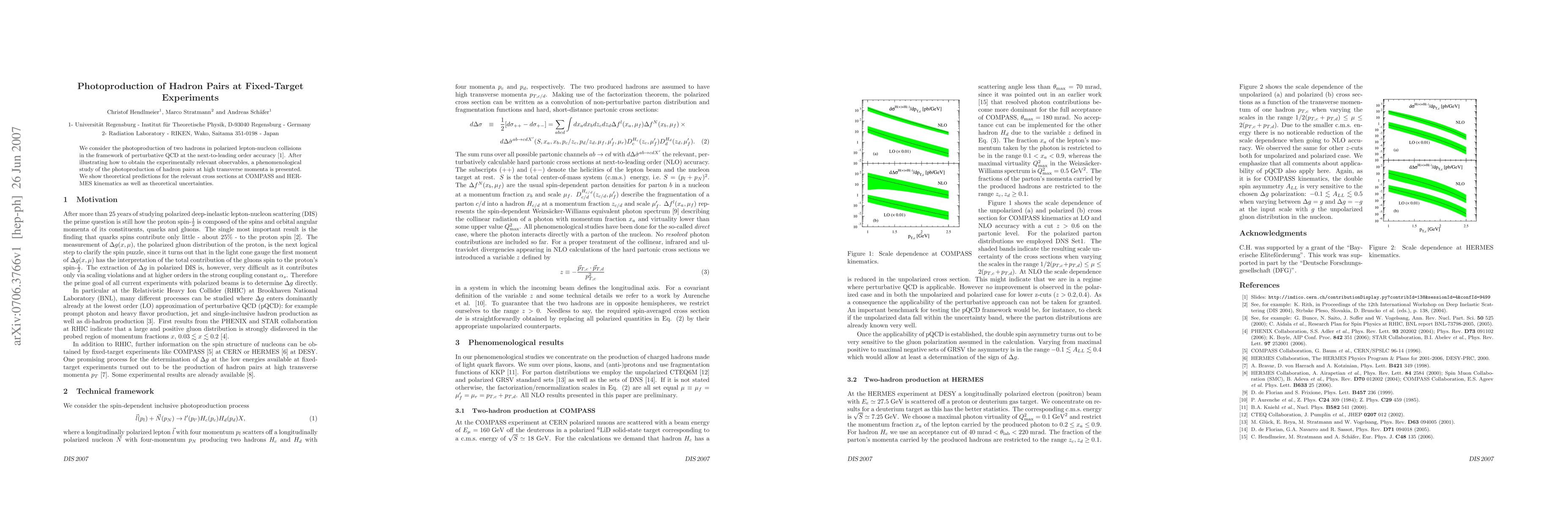 This paper investigates the photoproduction of hadron pairs in polarized lepton-nucleon collisions using perturbative QCD at next-to-leading order. It provides theoretical predictions for cross sections at COMPASS and HERMES kinematics, along with associated uncertainties.