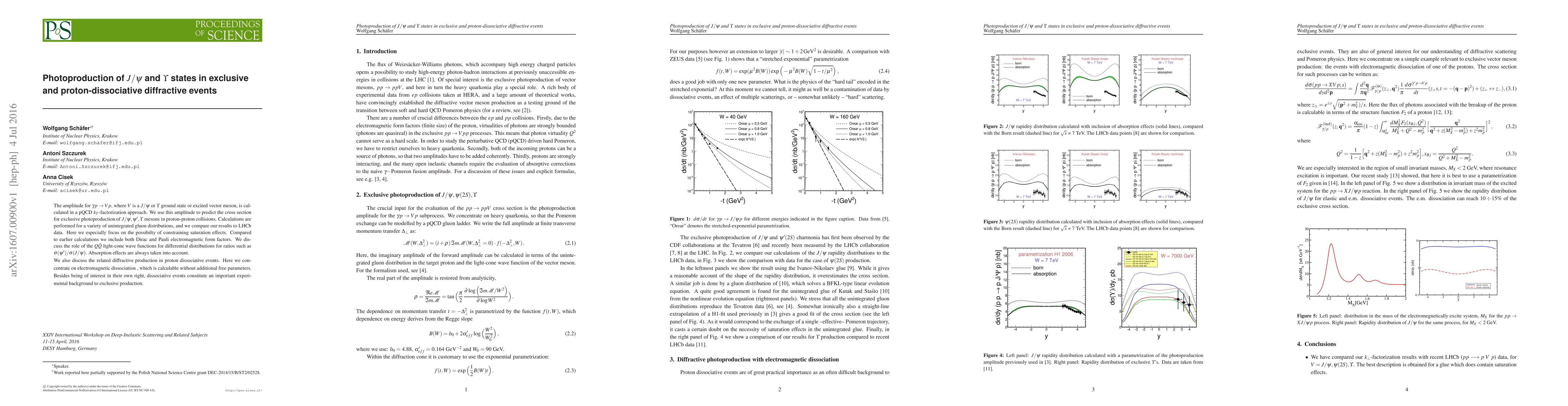 The amplitude for $\gamma p \to V p$, where $V$ is a $J/\psi$ or $\Upsilon$ ground state or excited vector meson, is calculated in a pQCD $k_{T}$-factorization approach. We use this amplitude to predict the cross section for exclusive photoproduction of $J/\psi, \psi', \Upsilon$ mesons in proton-proton collisions. Calculations are performed for a variety of unintegrated gluon distributions, and we compare our results to LHCb data. Here we especially focus on the possibilty of constraining saturation effects. Compared to earlier calculations we include both Dirac and Pauli electromagnetic form factors. We discuss the role of the $Q\bar Q$ light-cone wave functions for differential distributions for ratios such as $\sigma(\psi')/\sigma(J/\psi)$. Absorption effects are always taken into account. We also discuss the related diffractive production in proton dissociative events. Here we concentrate on electromagnetic dissociation , which is calculable without additional free parameters. Besides being of interest in their own right, dissociative events constitute an important experimental background to exclusive production.