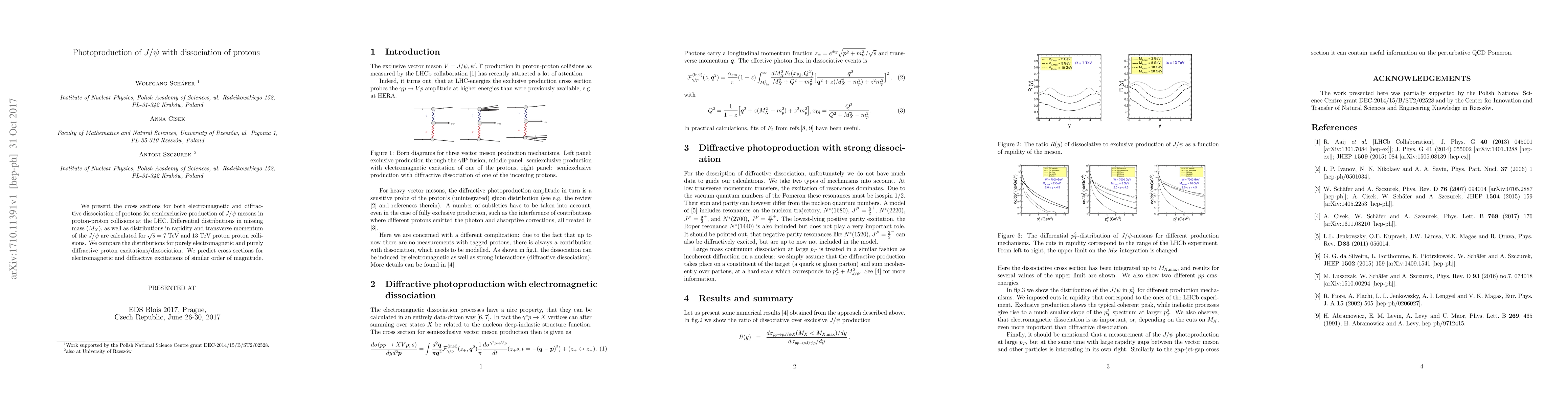The paper presents calculations of cross sections for electromagnetic and diffractive proton dissociation in $J/psi$ meson production via semiexclusive proton-proton collisions at LHC energies of 7 TeV and 13 TeV. It compares distributions in missing mass, rapidity, and transverse momentum for both excitation types, predicting similar magnitudes for electromagnetic and diffractive excitations.
