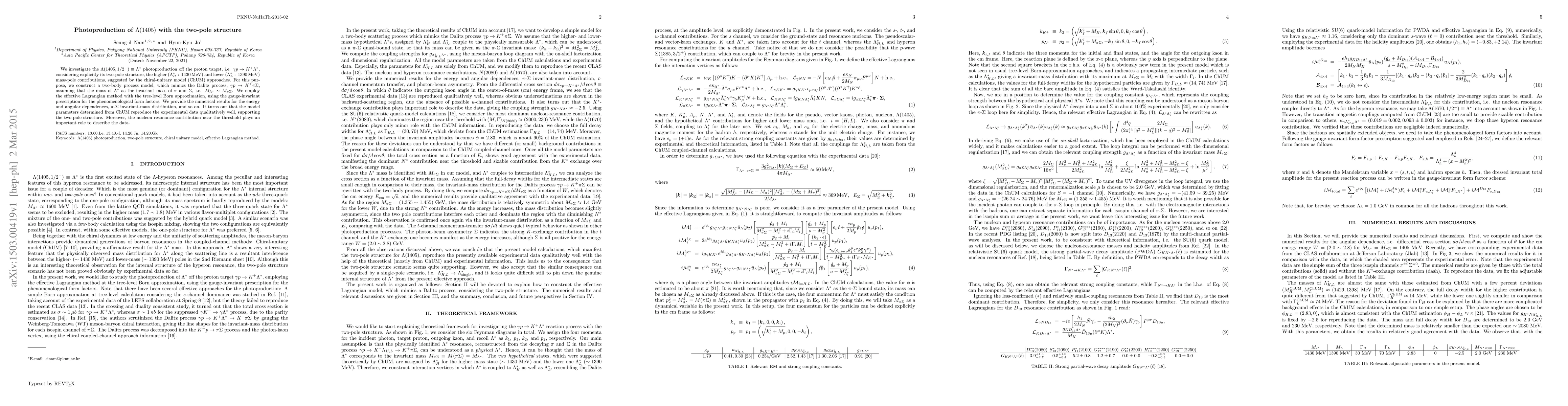 This paper investigates the photoproduction of $\Lambda(1405)$ off protons, considering its two-pole structure from higher and lower mass contributions. The study employs a two-body model and effective Lagrangian method, finding that the two-pole structure, as suggested by chiral-unitary models, fits experimental data well, with nucleon resonance effects near the threshold being significant.