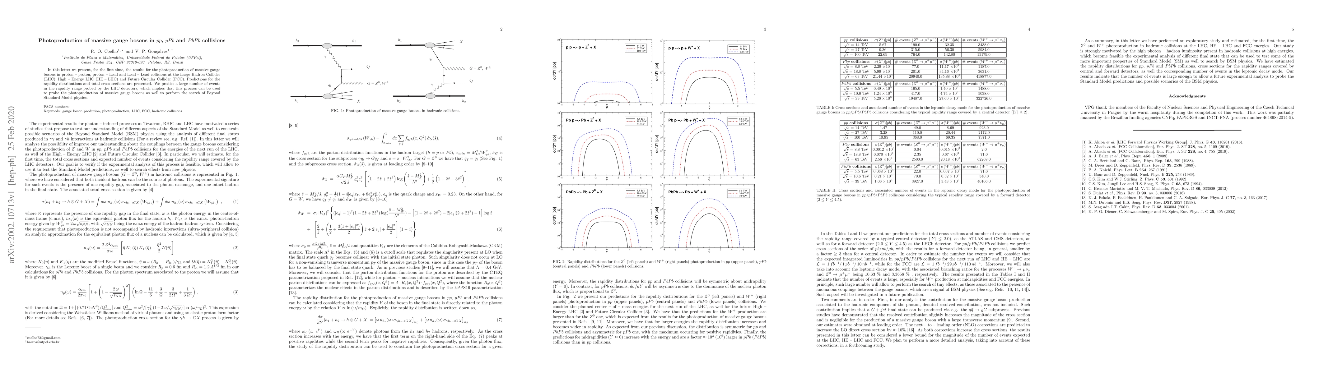 This paper presents the first results on the photoproduction of massive gauge bosons in proton-proton, proton-Lead, and Lead-Lead collisions at the LHC, HE-LHC, and FCC, with predictions for rapidity distributions and total cross sections. The study suggests a significant number of events, indicating potential for probing photoproduction and exploring Beyond Standard Model physics.