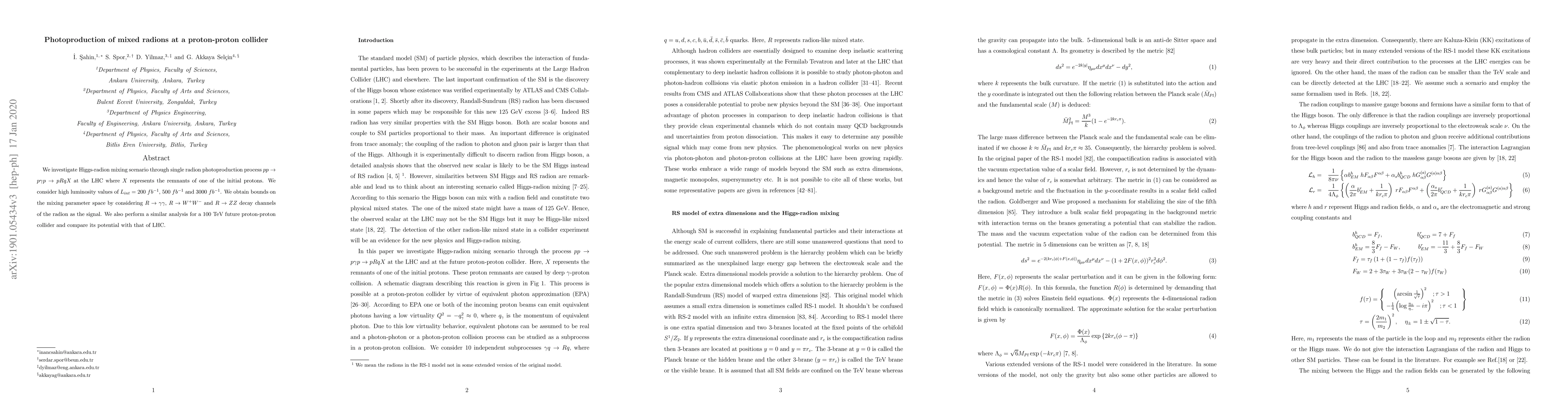 We investigate Higgs-radion mixing scenario through single radion photoproduction process $pp\to p\gamma p\to pRqX$ at the LHC where $X$ represents the remnants of one of the initial protons. We consider high luminosity values of $L_{int}=200\;fb^{-1}$, $500\;fb^{-1}$ and $3000\;fb^{-1}$. We obtain bounds on the mixing parameter space by considering $R\to \gamma\gamma$, $R\to W^+ W^-$ and $R\to ZZ$ decay channels of the radion as the signal. We also perform a similar analysis for a 100 TeV future proton-proton collider and compare its potential with that of LHC.