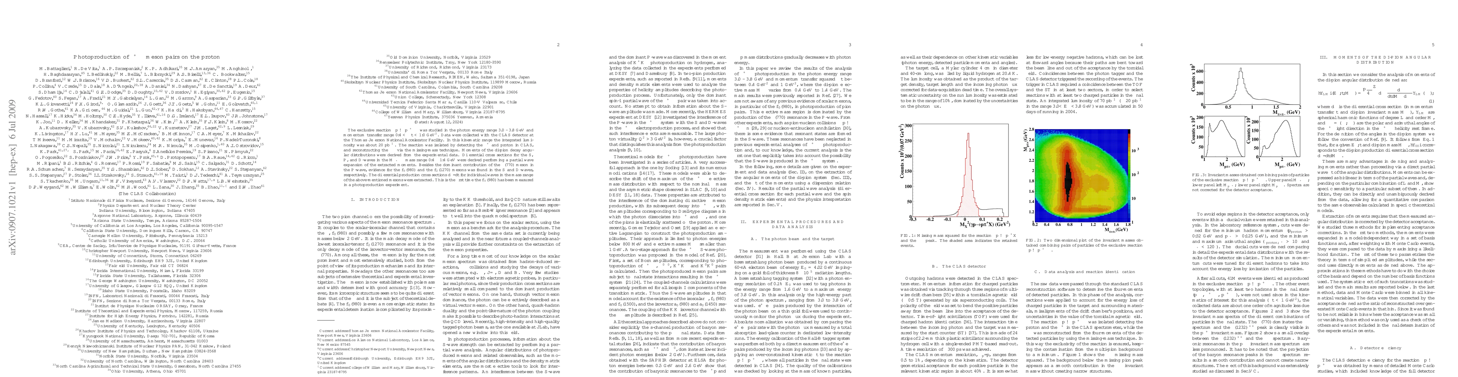 The exclusive reaction $\gamma p \to p \pi^+ \pi^-$ was studied in the photon energy range 3.0 - 3.8 GeV and momentum transfer range $0.4<-t<1.0$ GeV$^2$. Data were collected with the CLAS detector at the Thomas Jefferson National Accelerator Facility. In this kinematic range the integrated luminosity was about 20 pb$^{-1}$. The reaction was isolated by detecting the $\pi^+$ and proton in CLAS, and reconstructing the $\pi^-$ via the missing-mass technique. Moments of the di-pion decay angular distributions were derived from the experimental data. Differential cross sections for the $S$, $P$, and $D$-waves in the $M_{\pi^+\pi^-}$ mass range $0.4-1.4$ GeV were derived performing a partial wave expansion of the extracted moments. Besides the dominant contribution of the $\rho(770)$ meson in the $P$-wave, evidence for the $f_0(980)$ and the $f_2(1270)$ mesons was found in the $S$ and $D$-waves, respectively. The differential production cross sections $d\sigma/dt$ for individual waves in the mass range of the above-mentioned mesons were extracted. This is the first time the $f_0(980)$ has been measured in a photoproduction experiment.