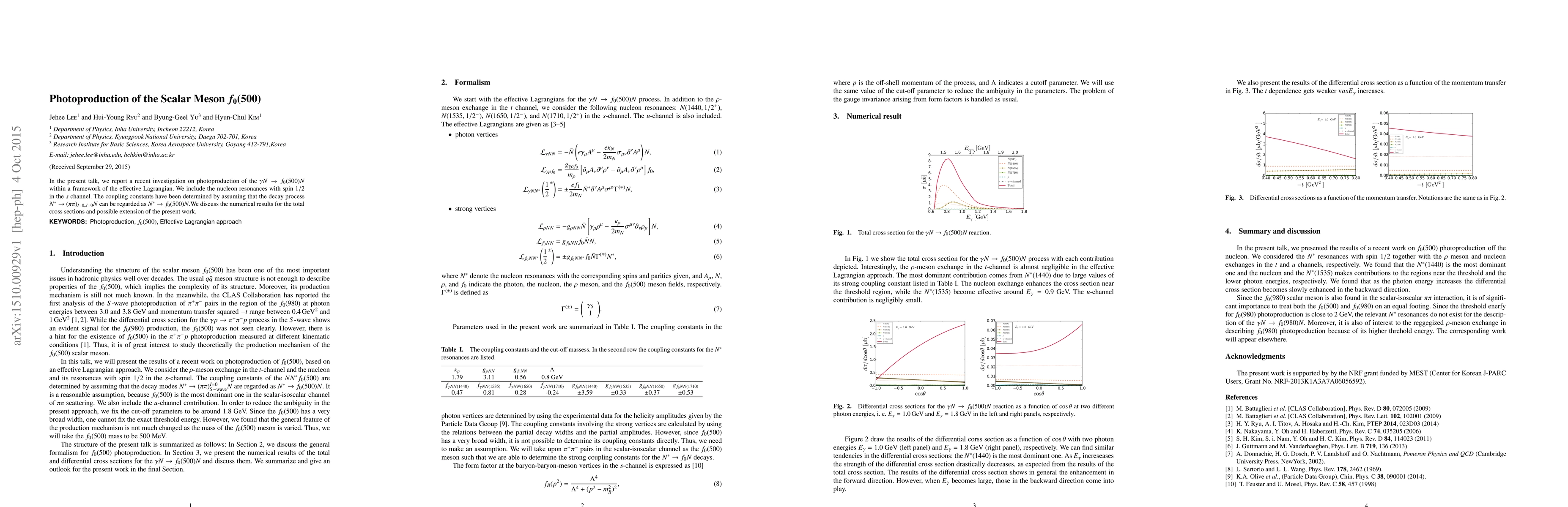 The research used an effective Lagrangian approach to study photoproduction of the $f_0(500)$ scalar meson.