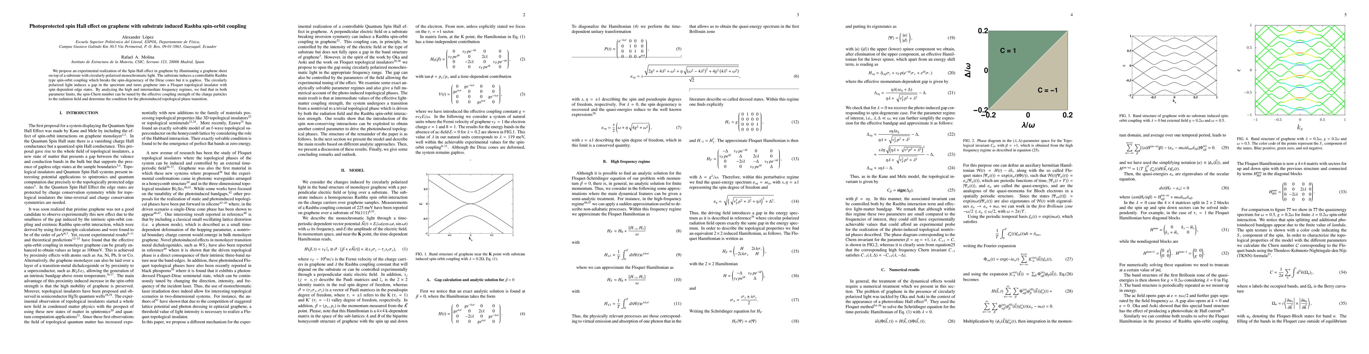 Summary: This paper proposes an experimental setup to induce the Spin Hall effect in graphene using circularly polarized light on a substrate that creates Rashba spin-orbit coupling, turning graphene into a Floquet topological insulator. The spin-Chern number, indicative of the topological phase transition, can be tuned by the coupling strength to the light field.