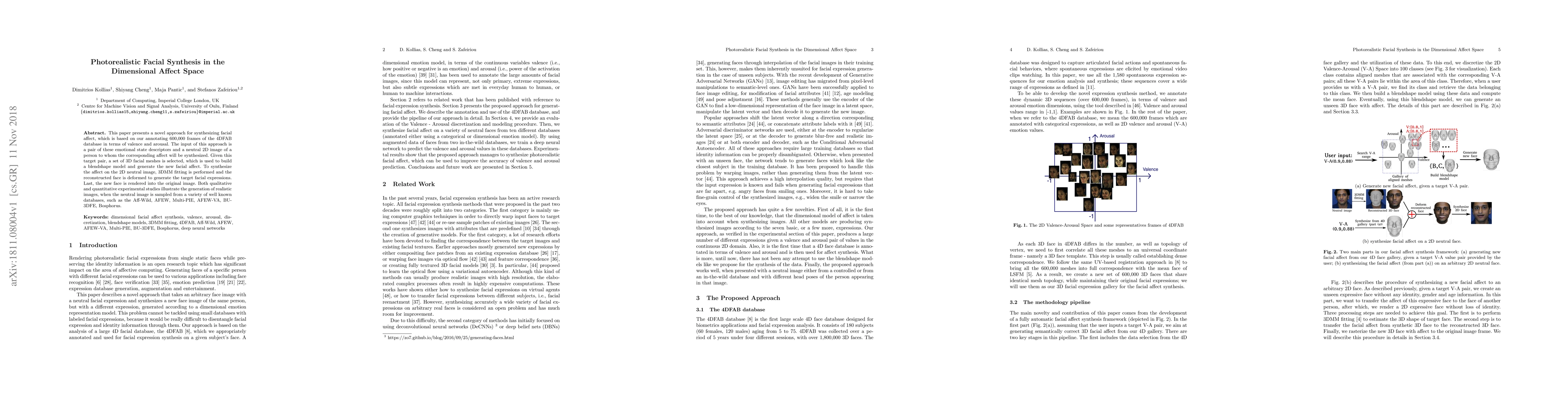 This paper presents a novel approach for synthesizing facial affect, which is based on our annotating 600,000 frames of the 4DFAB database in terms of valence and arousal. The input of this approach is a pair of these emotional state descriptors and a neutral 2D image of a person to whom the corresponding affect will be synthesized. Given this target pair, a set of 3D facial meshes is selected, which is used to build a blendshape model and generate the new facial affect. To synthesize the affect on the 2D neutral image, 3DMM fitting is performed and the reconstructed face is deformed to generate the target facial expressions. Last, the new face is rendered into the original image. Both qualitative and quantitative experimental studies illustrate the generation of realistic images, when the neutral image is sampled from a variety of well known databases, such as the Aff-Wild, AFEW, Multi-PIE, AFEW-VA, BU-3DFE, Bosphorus.