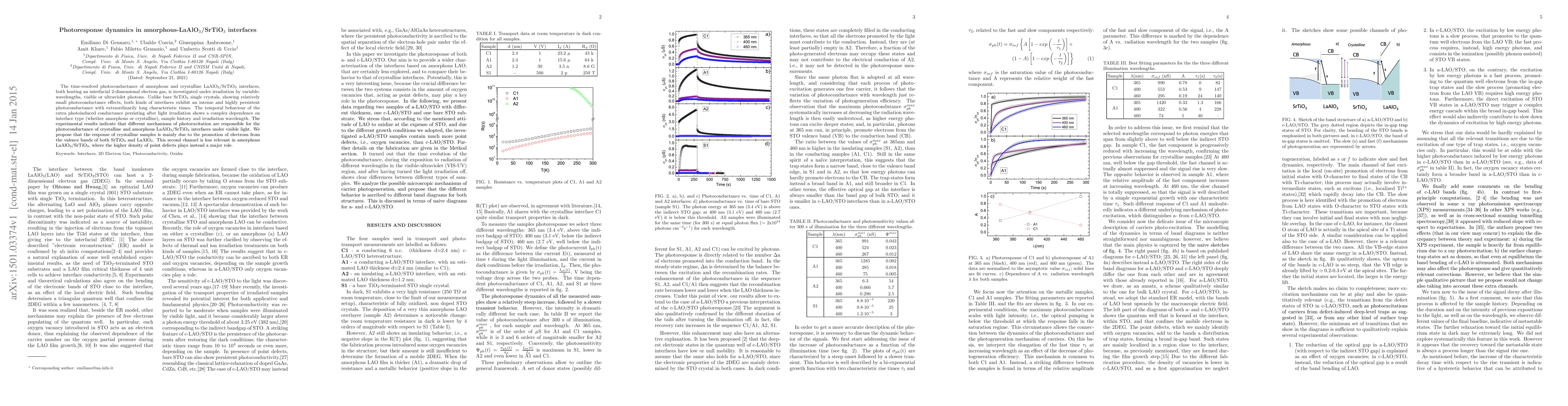 This paper investigates the time-resolved photoconductance dynamics in amorphous and crystalline LaAlO$_3$/SrTiO$_3$ interfaces, revealing intense and long-lasting photoconductance effects. The study proposes distinct photoexcitation mechanisms for crystalline and amorphous interfaces, with crystalline samples showing electron promotion from valence bands and amorphous samples being influenced more by point defects.