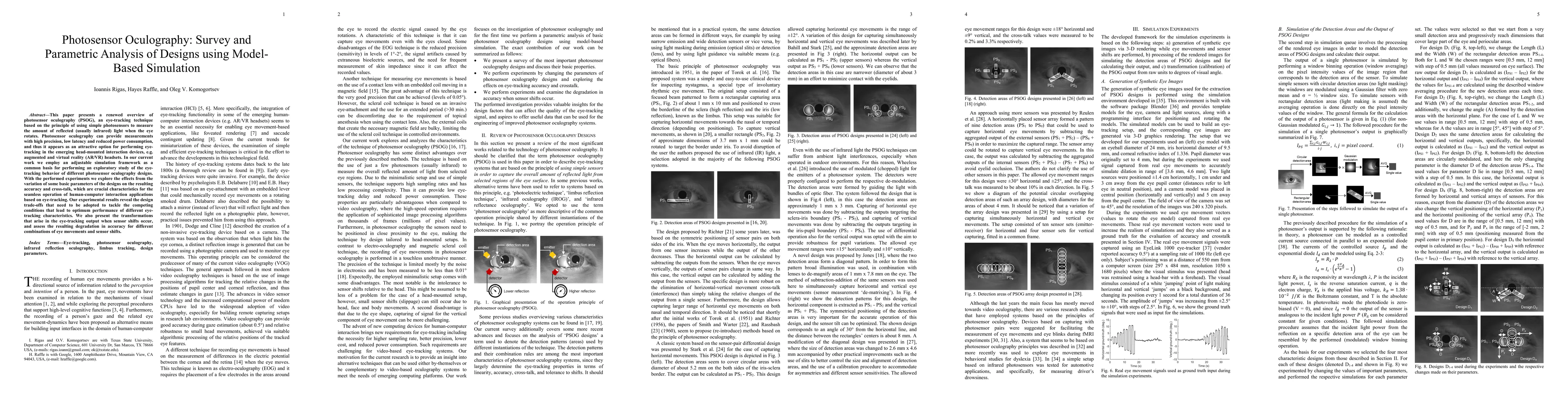 This paper reviews photosensor oculography, an eye-tracking method using photosensors to measure reflected light, and conducts a parametric analysis of its designs via simulation. The study identifies design trade-offs and sensor shift impacts on accuracy and cross-talk for optimal eye-tracking performance in AR/VR applications.